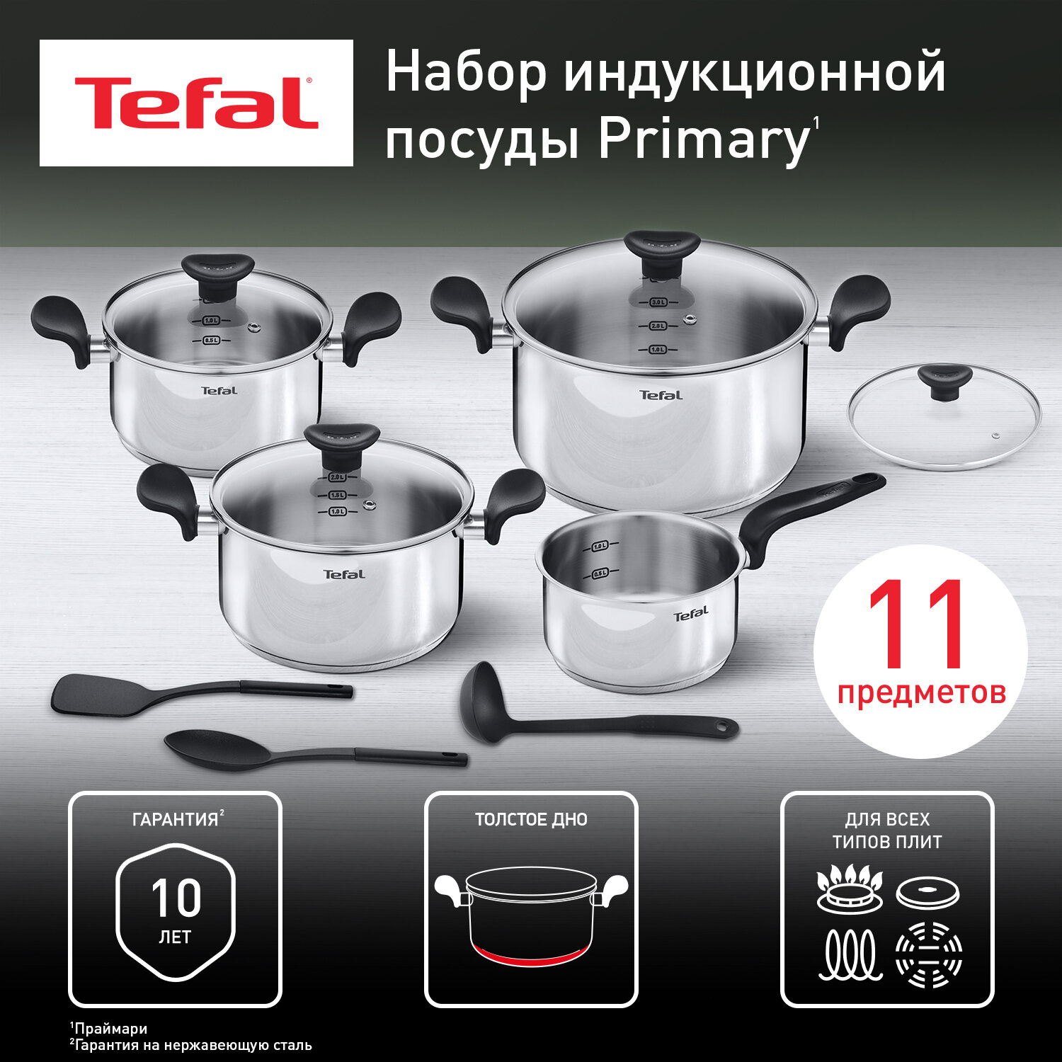 Набор посуды Tefal PRIMARY 11 предметов 16/18/20/24 см E308SB74