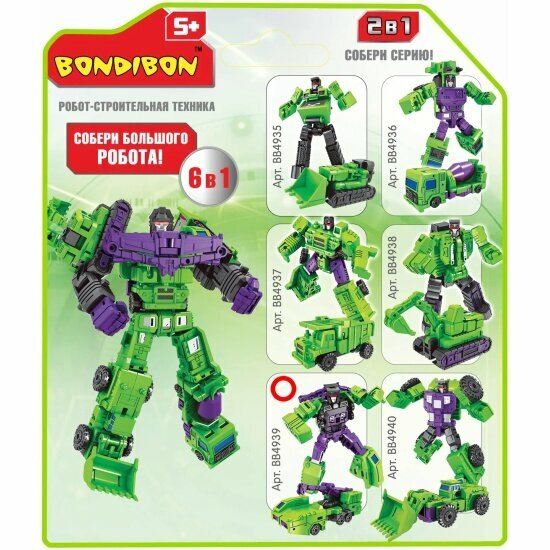 Чем порадовать маленького мальчика? Разумное решение робот – трансформер "BONDIBOT 2в1" - он покорил сердца всех мальчишек на планете! Проявив смекалку, ребенок сможет самостоятельно собирать и разбирать сколько угодно раз робота, превращая его в кран.В процессе игры ребенок развивает мелкую моторику, пространственное и образное мышление и тренирует воображение. Красочная упаковка с описанием механизма трансформации на листе с европодвесом, размер упаковки 13х4,5х21 см.
