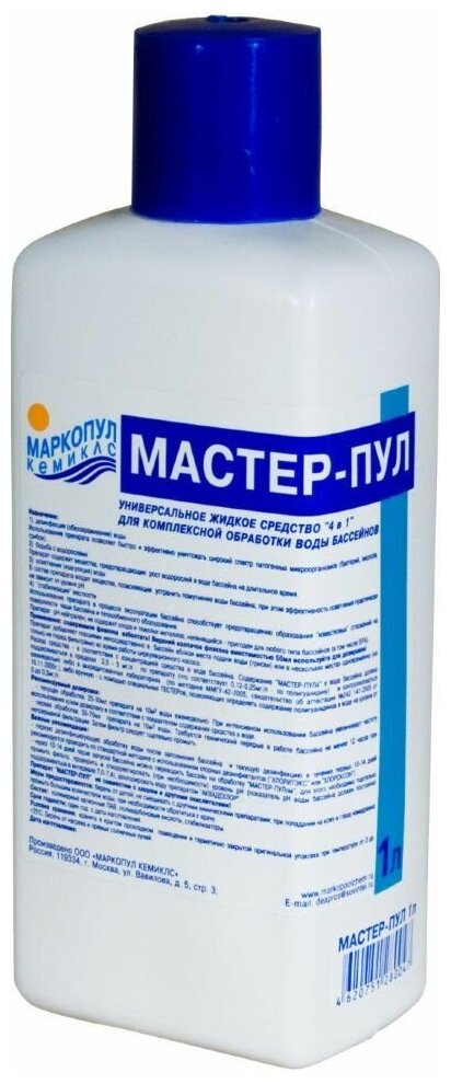 Маркопул Кемиклс Мастер-Пул Жидкое бесхлорное средство 4 в 1 для обеззараживания и очистки воды 1 л