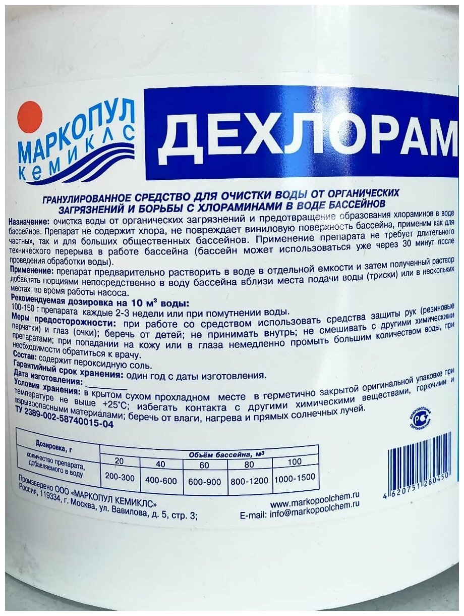 Маркопул Кемиклс Дехлорамин Гранулы для очистки воды от хлораминов и органиченных загрязнений 1 кг