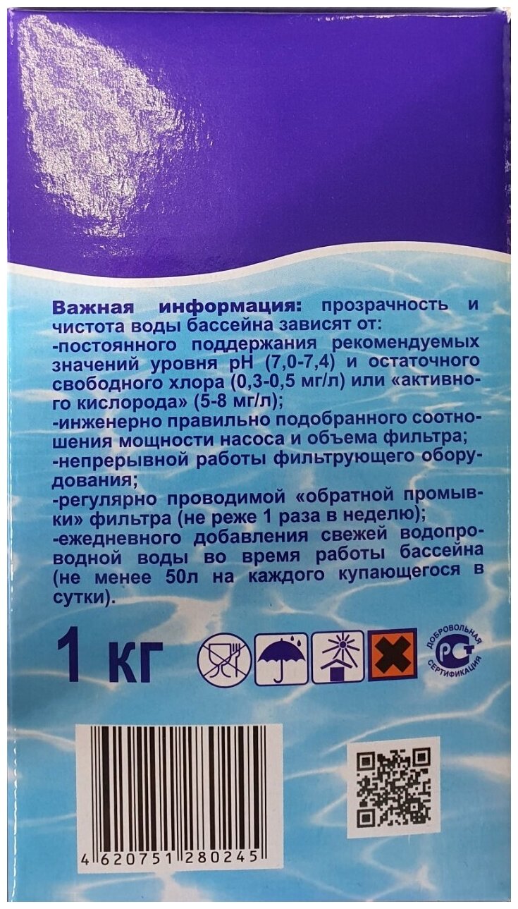 Благодаря медленно растворимой форме препарат непрерывно и равномерно в течение длительного времени дозирует в воду бассейна коагулирующее средство, что значительно улучшает фильтрационный эффект песочных и цеолитовых фильтров.