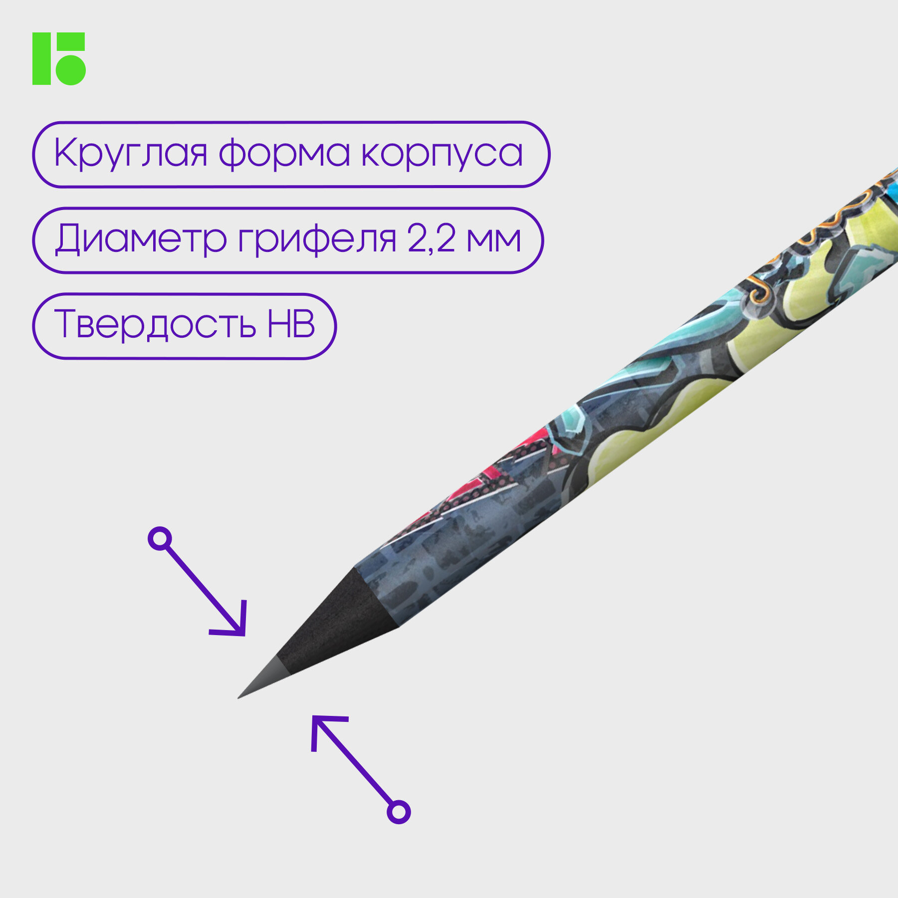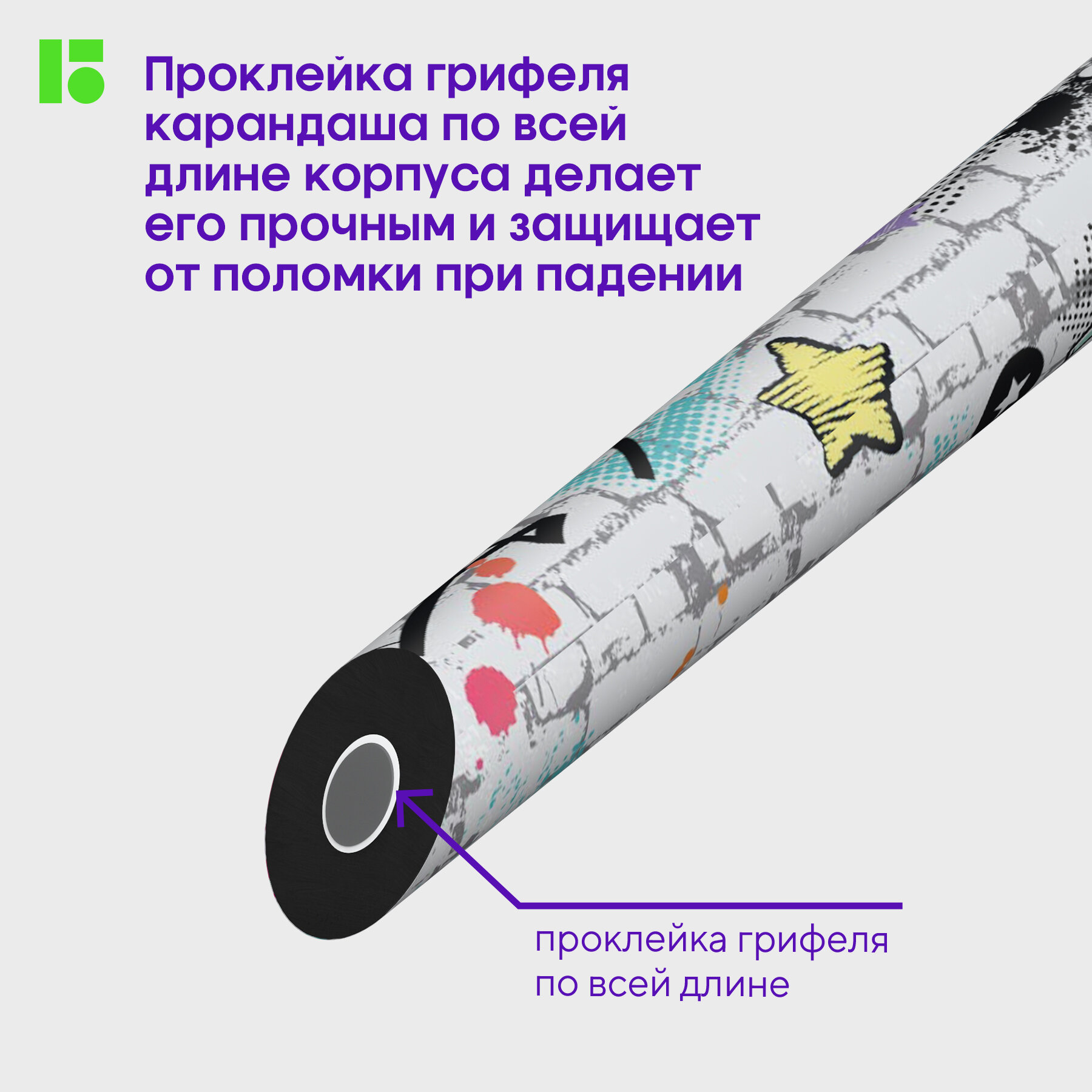 Дизайн карандашей стилизован под кирпичную стену с ярким современным рисунком-граффити. Матовое покрытие, дизайны корпуса представлены в 3-х вариантах.