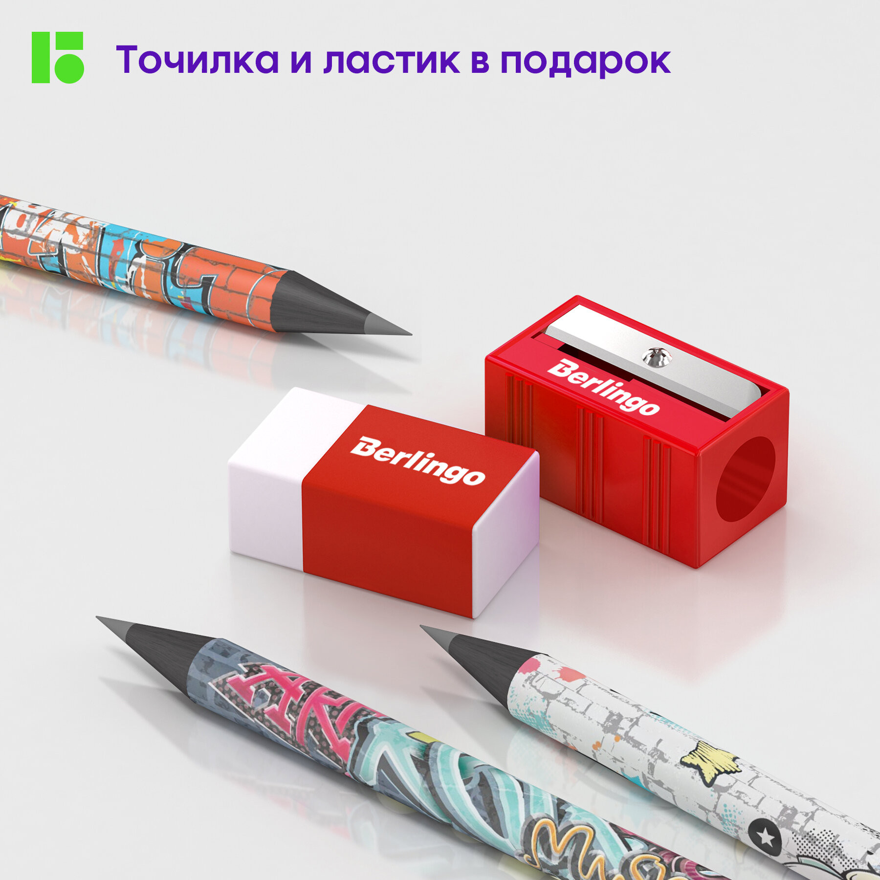 На сегодняшний день товар «Набор чернографитных карандашей Berlingo Карандаш StreetArt чернографитный HB круглый, заточенный 12 шт. с точилкой и ластиком» можно купить с кешбеком в 1 магазине: Яндекс.Маркет