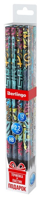 Набор чернографитных карандашей Berlingo Карандаш StreetArt чернографитный HB круглый, заточенный 12 шт. с точилкой и ластиком