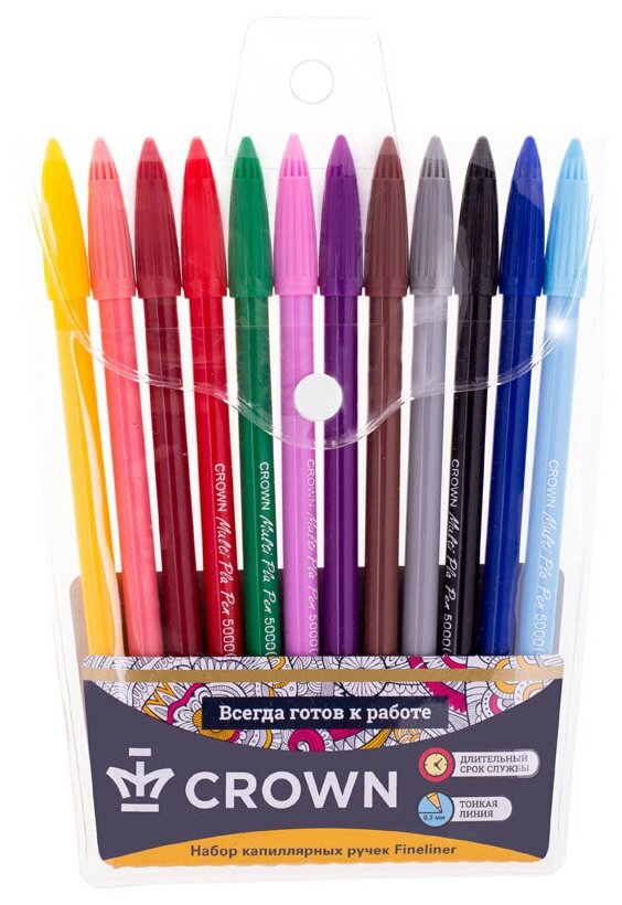 Набор капиллярных ручек Crown MultiPla CMP-5000SET (12 цв) Набор капиллярных ручек MultiPla 12 цветов