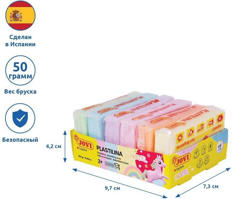 Пластилин JOVI 6 пастельных цветов х 50гр. Art. 70/6P Пластилин растительный 6 пастельных цветов 300 г
