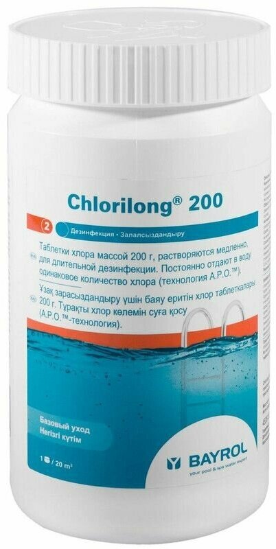На сегодняшний день товар «Дезинфицирующее средство для бассейна Bayrol ChloriLong 200 (Хлорилонг 200) 4536117 5 кг Медленнорастворимый хлор для непрерывной дезинфекции воды ChloriLong 200 5 кг» можно купить с кешбеком в 1 магазине: Яндекс.Маркет