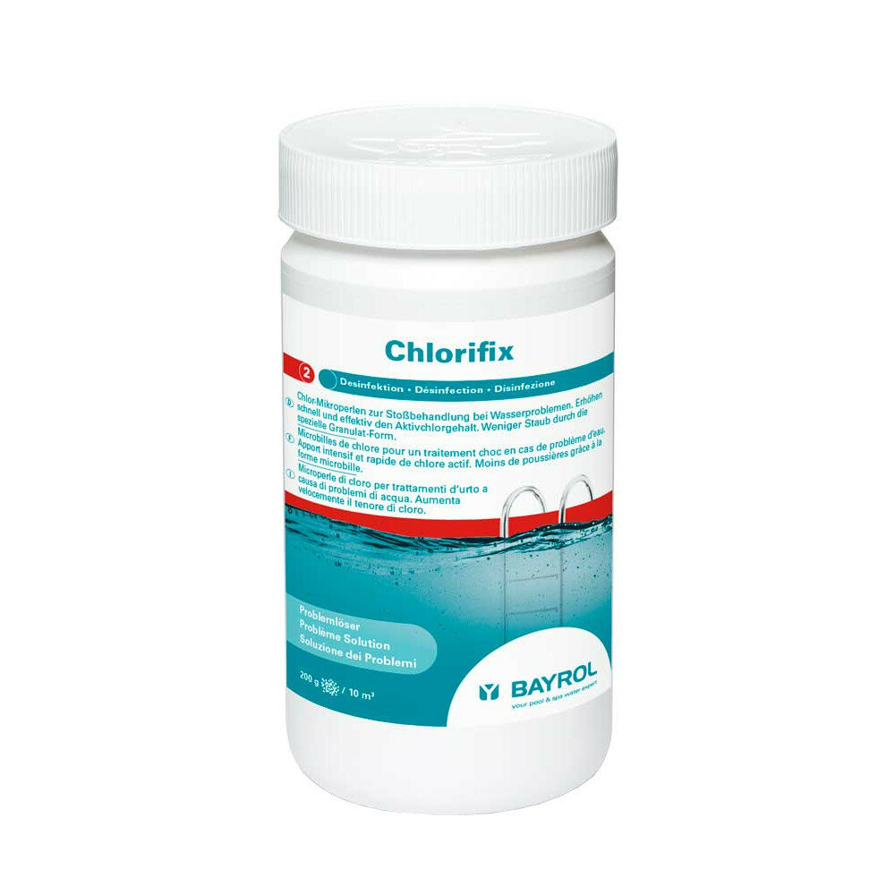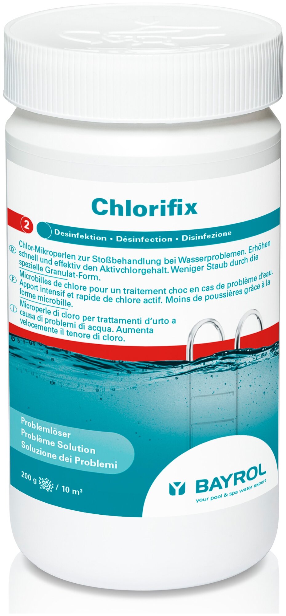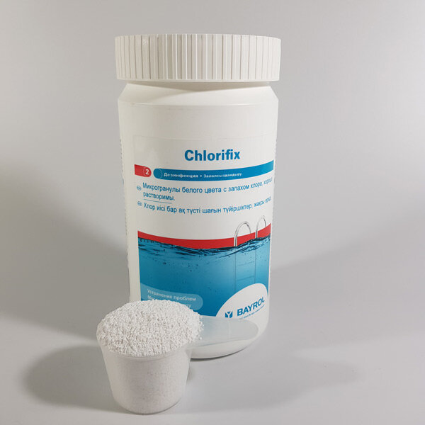 Bayrol Хлорификс — это быстрорастворимый хлоргранулят, который немедленно действует против бактерий, грибков и вирусов, и разрушает органические вещества, вызывающие помутнение, и загрязнения в воде плавательных бассейнов.