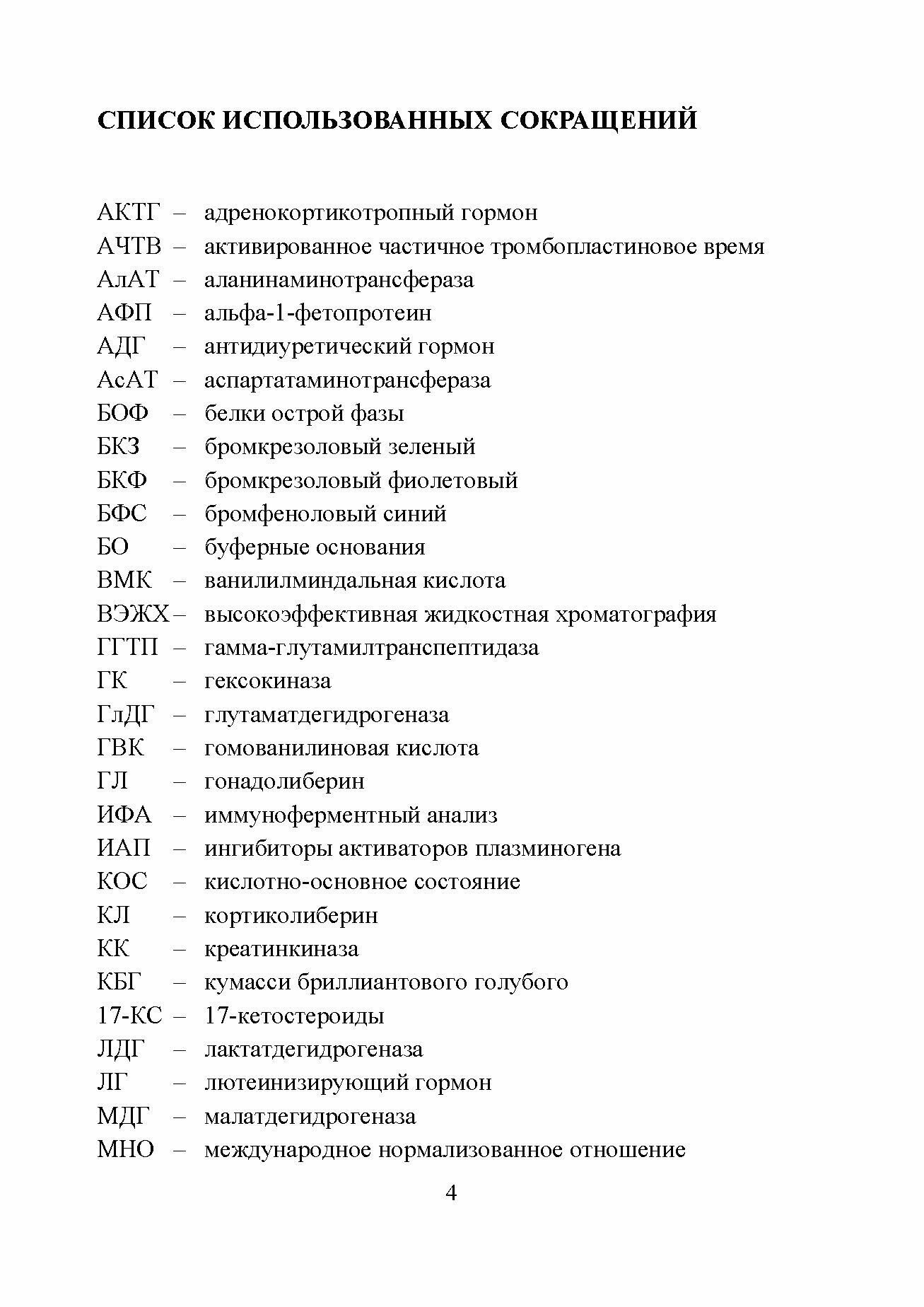 В пособии изложена информация об организационных аспектах клинической лабораторной диагностики, дана лабораторная оценка белкового, углеводного и липидного обмена. Приведена информация о методах лабораторной диагностики нарушений КОС и водно-электролитного обмена, гемостаза. Обсуждаются вопросы использования лабораторных показателей при оценке состояния печени, почек, сердца и костной ткани, а также при диагностике онкозаболеваний.