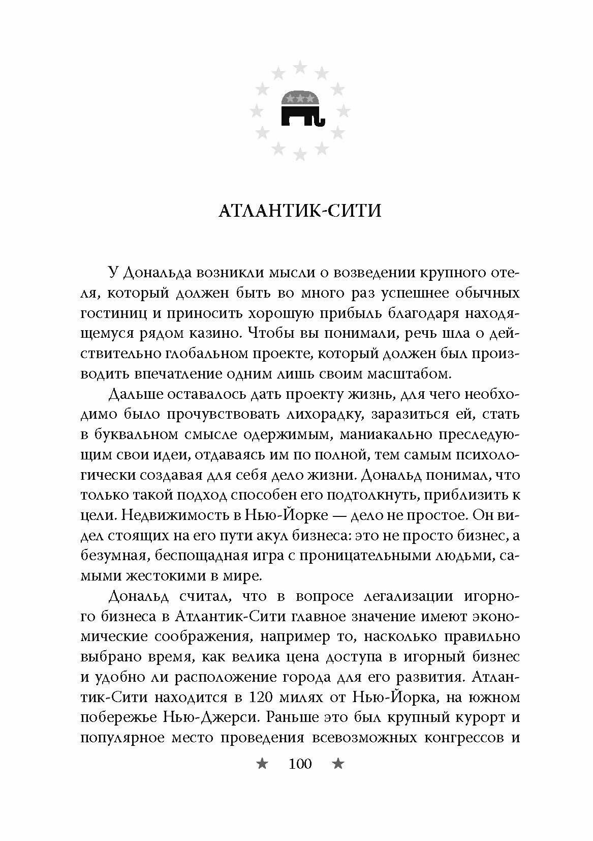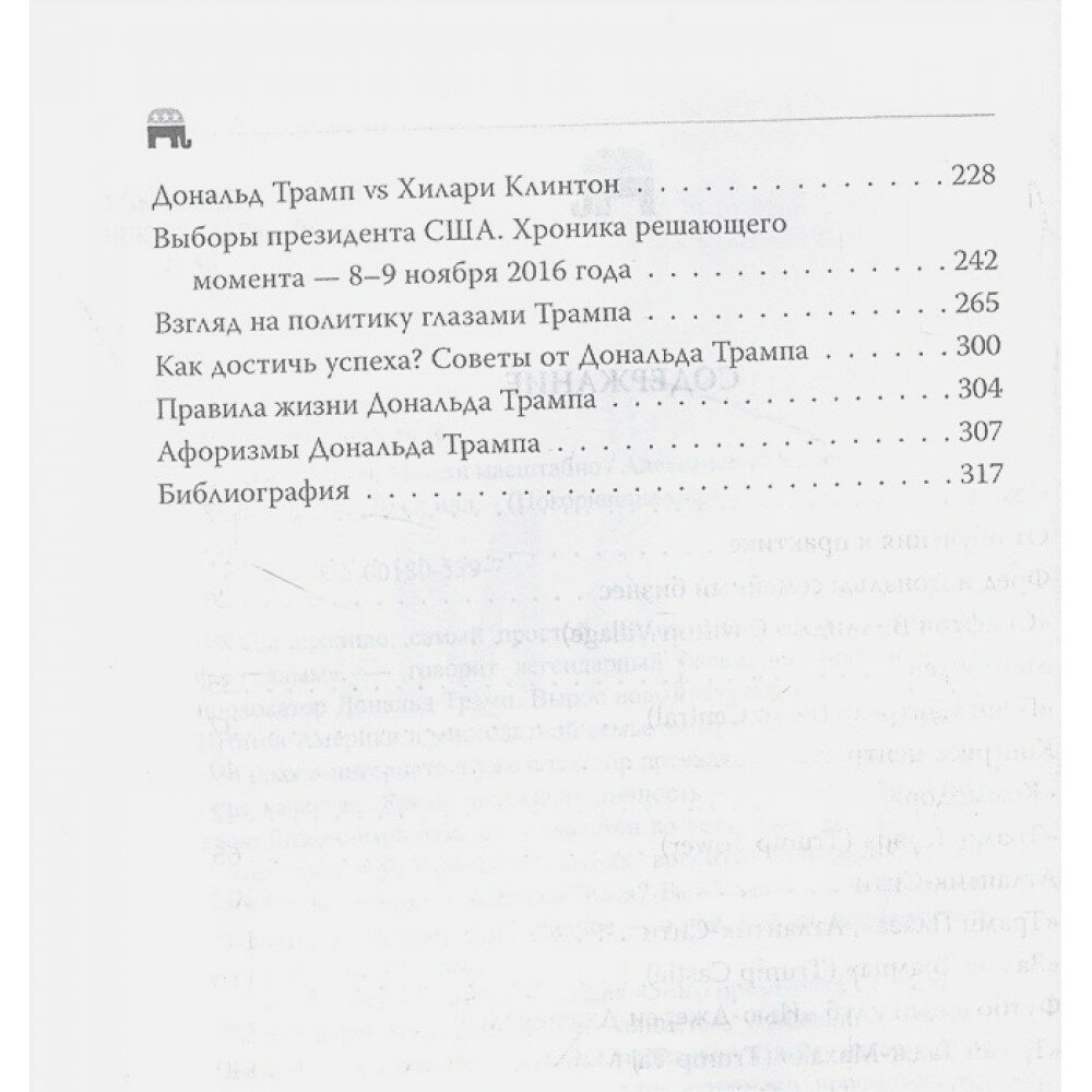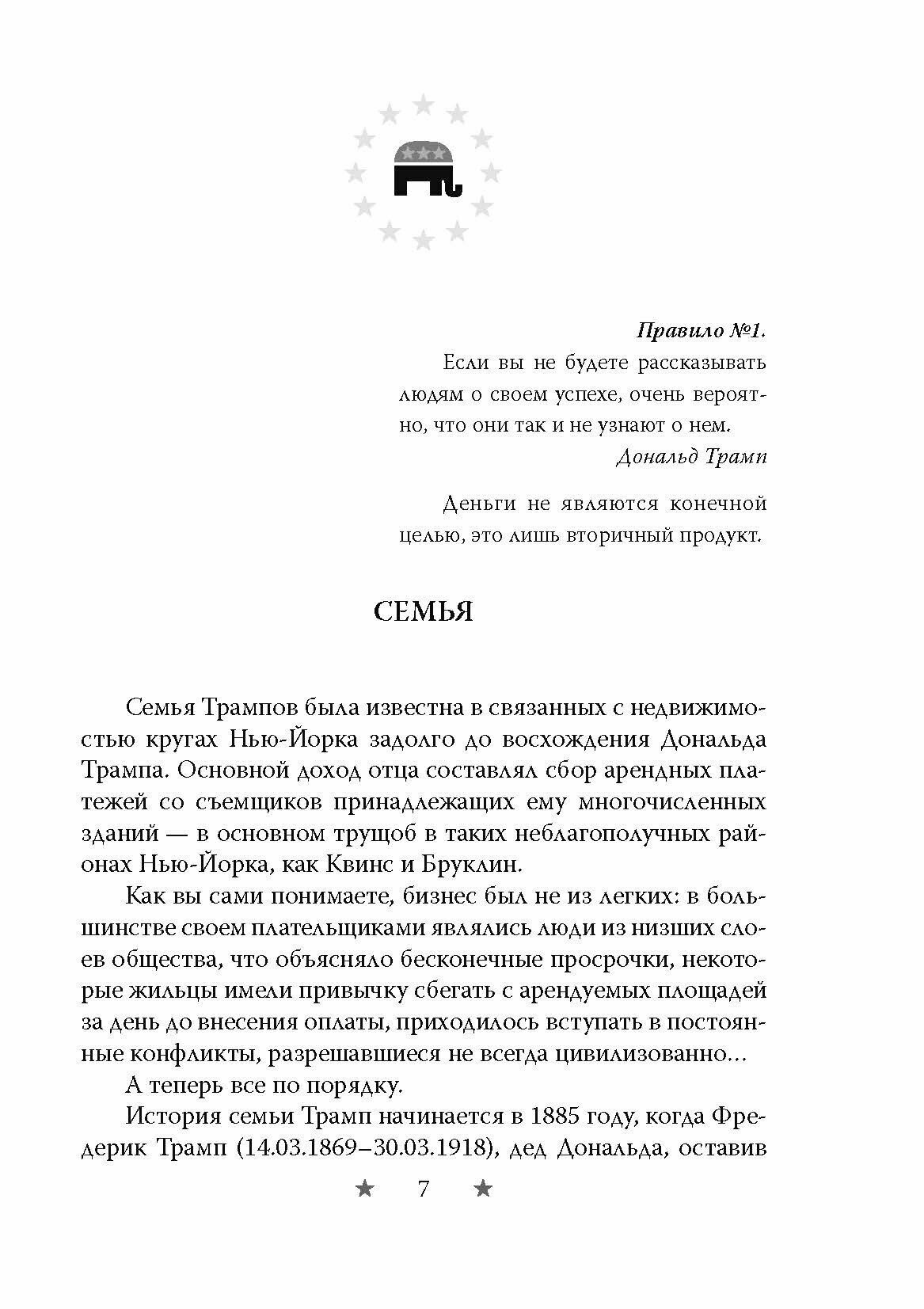 «Как правило, самый простой подход оказывается самым эффективным», — говорит легендарный бизнесмен-миллиардер и провокатор Дональд Трамп. Вырос новый президент Соединенных Штатов Америки в многодетной семье эмигрантов, учился в военной школе-интернате и уже с тех пор проявлял незаурядные лидерские качества. Яркая, эпатажная личность — он с нуля построил свою бизнес-империю, стал известен во всем мире. Был женат на знаменитых и успешных женщинах, воспитал пять детей в трех браках. Но как же он всего добился? Было ли это действительно для него так уж просто? И главное — о чем, все же, предпочитает молчать Дональд Трамп? Полная и откровенная биография 45-ого президента США написана молодым и талантливым публицистом, специалистом-аналитиком Александром Немировым. Специально для Вас автор изучил все возможные англоязычные и русские источники; просмотрел все официальные интервью и записи неофициальных встреч. Прочтите книгу и откройте для себя всю правду о Дональде Джоне Трампе!