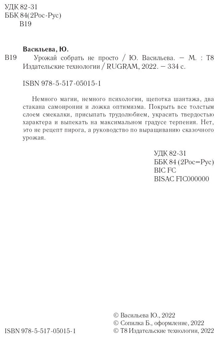 Книга: Урожай собрать не просто (Васильева Ю.); Т8 Издательские технологии, 2022
