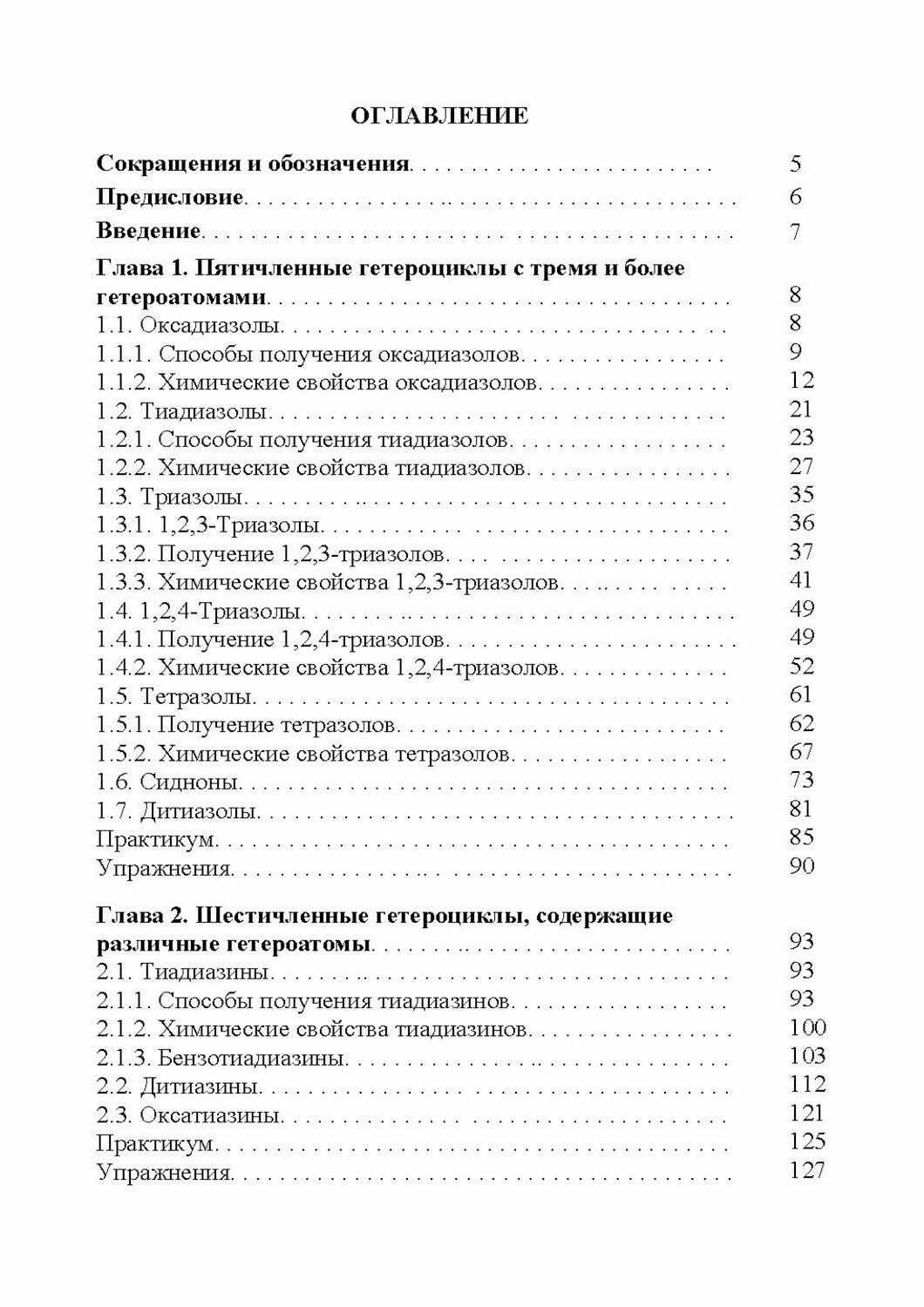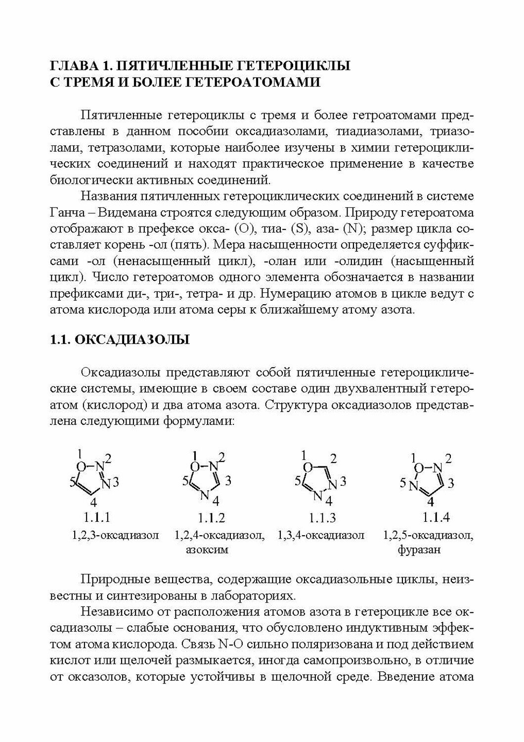 В учебном пособии излагаются основы химии гетероциклических соединений, имеющих в своем составе три и более гетероатома. Представлены основные способы получения оксадиазолов, тиадиазолов, триазолов, тетразолов, оксадиазинов, тиадиазинов, триазинов, тетразинов, их химические превращения, а также применение в различных областях. Учебный материал систематизирован по классам гетероциклических соединений. Приведены лабораторные методики получения некоторых представителей гетероциклических соединений с использованием доступных реагентов.