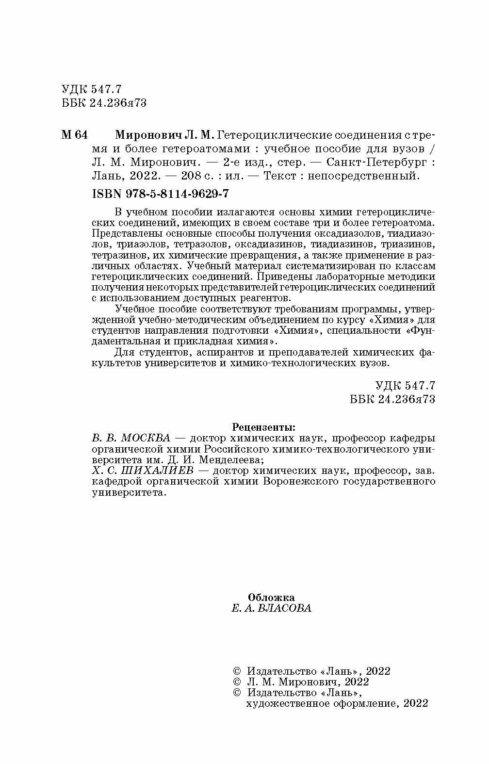 Сервис сравнения цен СкидкаГИД предлагает сравнить цены на товар «Книга: Гетероциклические соединения с тремя и более гетероатомами. Учебное пособие для вузов (Л. М. Миронович); Издательство ЛАНЬ, 2022»