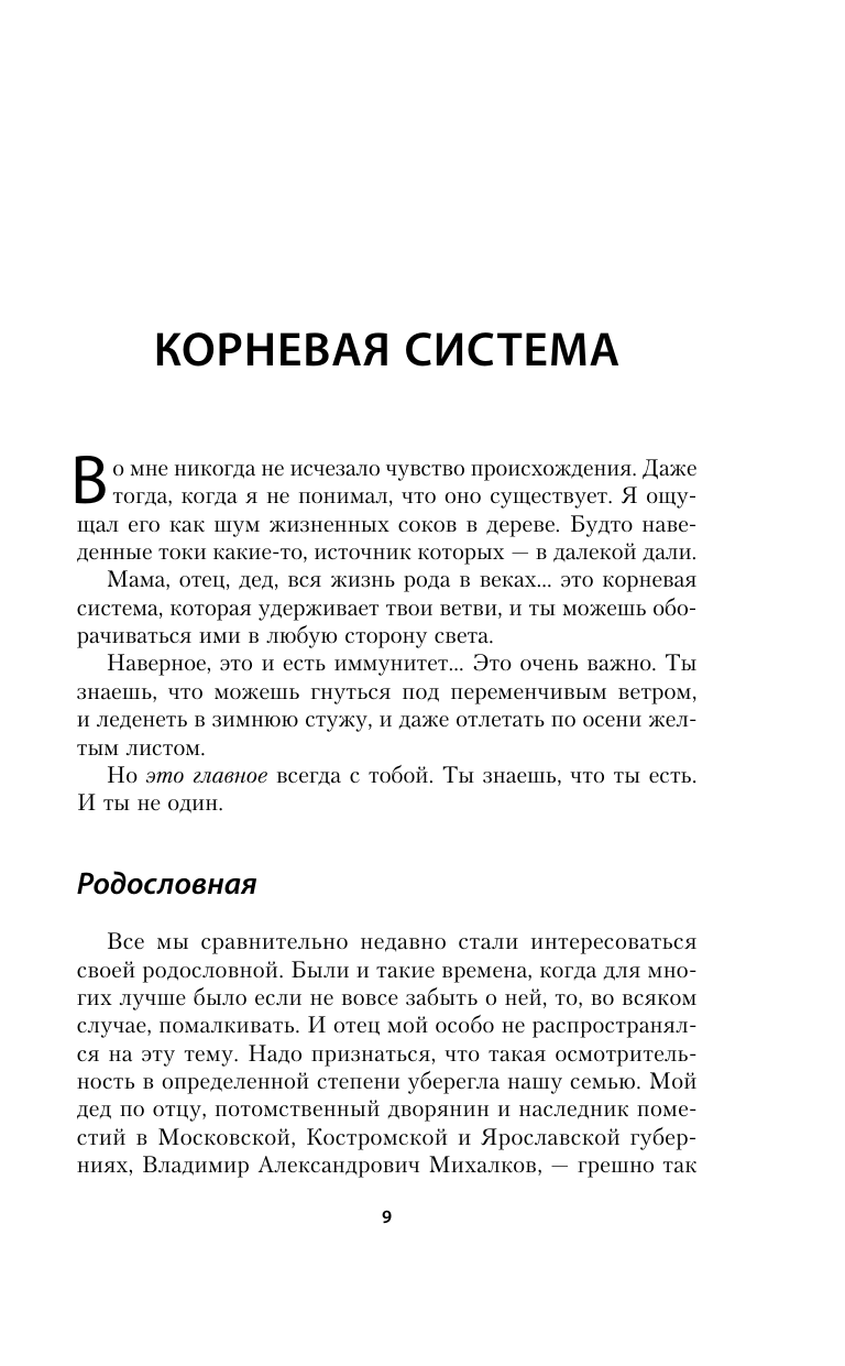 Книга знаменитого режиссера и актера Никиты Михалкова - замечательный пример яркой автобиографической прозы. Частная жизнь и творчество сплетены здесь неразрывно. Начав со своей родословной (в числе предков автора - сподвижники Дмитрия Донского и Ермака, бояре Ивана Грозного и Василий Суриков), Никита Михалков переходит к воспоминаниям о матери, отце - авторе гимна СССР и новой России. За интереснейшей историей отношений со старшим братом, известным кинорежиссером, следует рассказ о своих детях - Ане, Наде, Степане, Артеме. Новые, порой неожиданные для читателя грани в судьбе автора открывает его доверительный рассказ о многих эпизодах личной жизни. О взаимном чувстве и драматическом разрыве с Анастасией Вертинской и о Любви на всю жизнь к своей жене Татьяне. О службе в армии на Тихом океане и Камчатке... И, конечно же, о своих ролях и режиссерских работах.