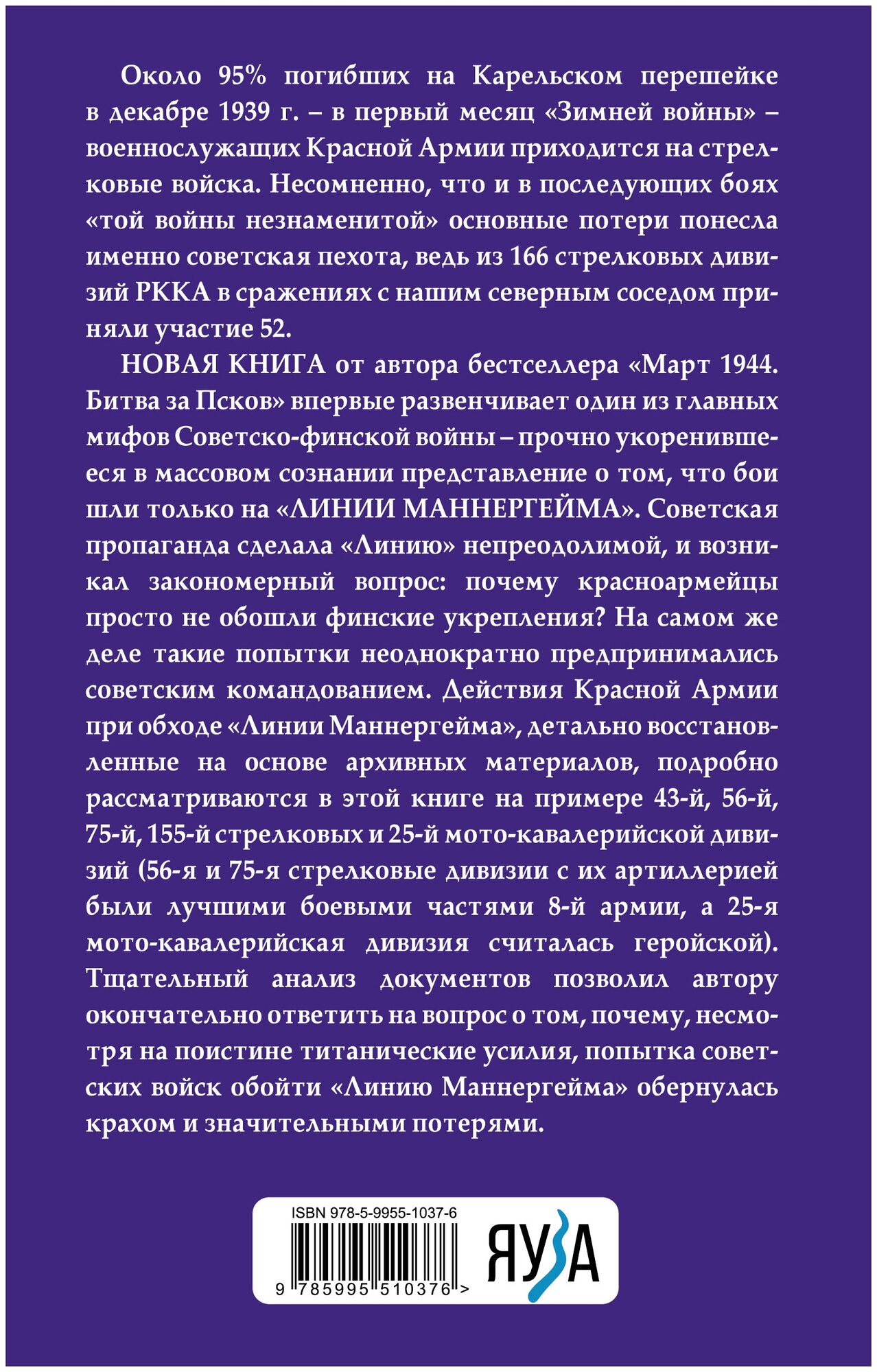 Известный военный историк развенчивает один из главных мифов Советско-финской войны - прочно укоренившееся в массовом сознании представление о том, что бои шли только на "Линии Маннергейма". Советская пропаганда сделала "Линию" непреодолимой, и возникал закономерный вопрос: почему красноармейцы просто не обошли финские укрепления? На самом же деле, такие попытки неоднократно предпринимались советским командованием. Действия Красной Армии при обходе "Линии Маннергейма", детально восстановленные на основе архивных материалов, подробно рассматриваются в этой книге на примере 43-й, 56-й, 75-й, 155-й стрелковых и 25-й мото-кавалерийской дивизий (56-я и 75-я стрелковые дивизии с их артиллерией были лучшими боевыми частями 8-й армии, а 25-я мото-кавалерийская дивизия считалась геройской). Тщательный анализ документов позволил автору окончательно ответить на вопрос о том, почему, несмотря на все затраченные поистине титанические усилия, обернулась не только крахом, но и значительными потерями попытка советских войск обойти "Линию Маннергейма".