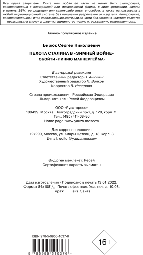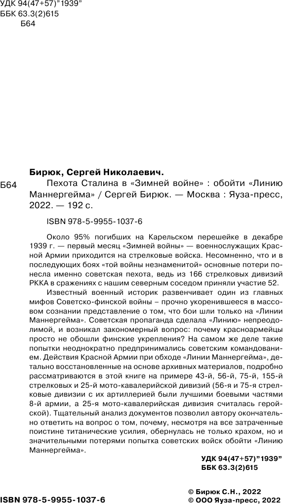 Пехота Сталина в Зимней войне обойти Линию Маннергейма (Сергей Бирюк); Издательство Яуза ООО, 2022