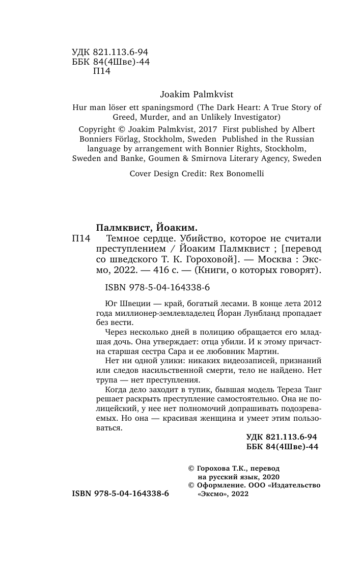Темное сердце. Убийство которое не считали преступлением (Йоаким Палмквист); Эксмо, БОМБОРА, 2022