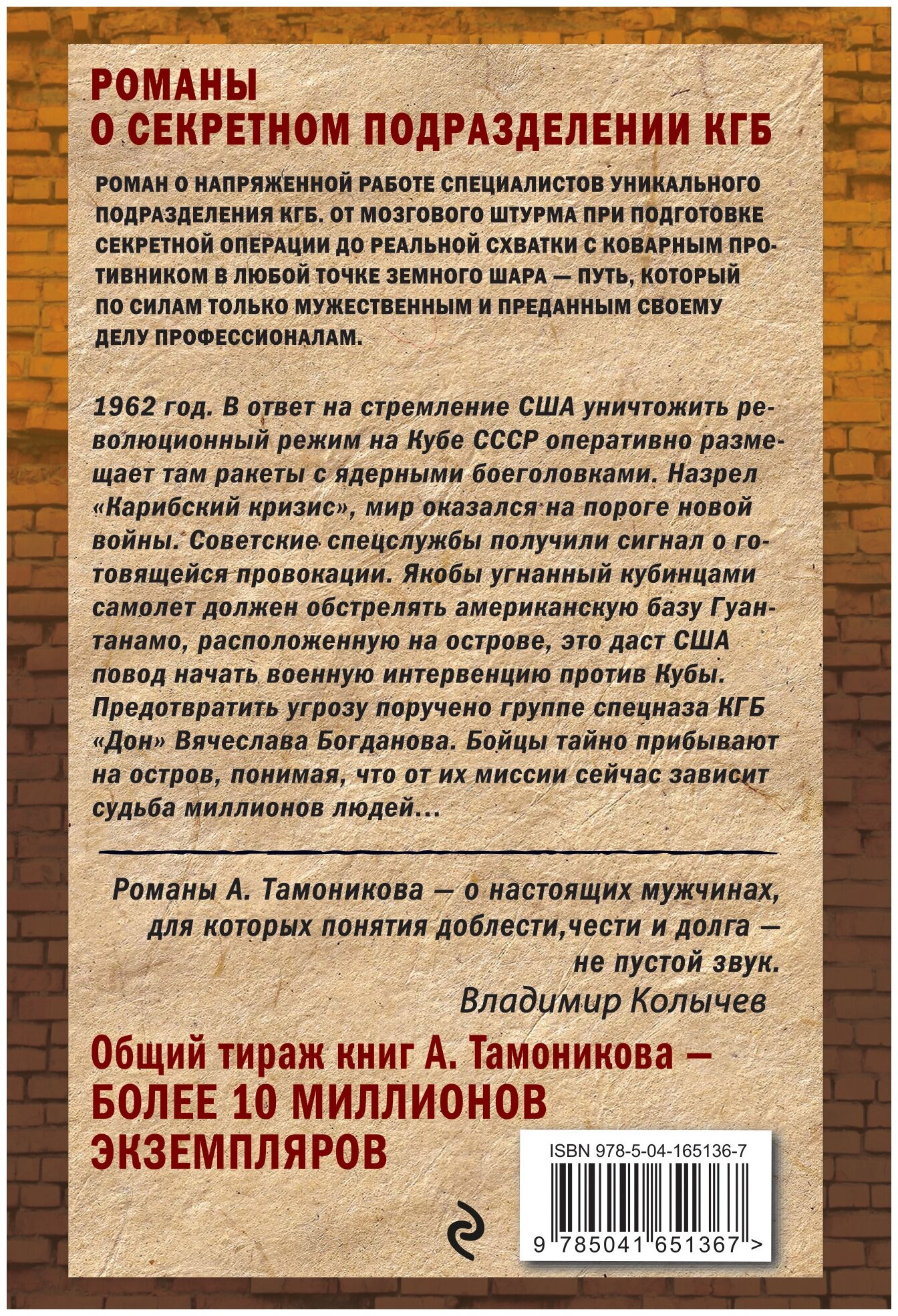 "Романы А. Тамоникова - о настоящих мужчинах, для которых понятия доблести, чести и долга - не пустой звук". - В. Колычев