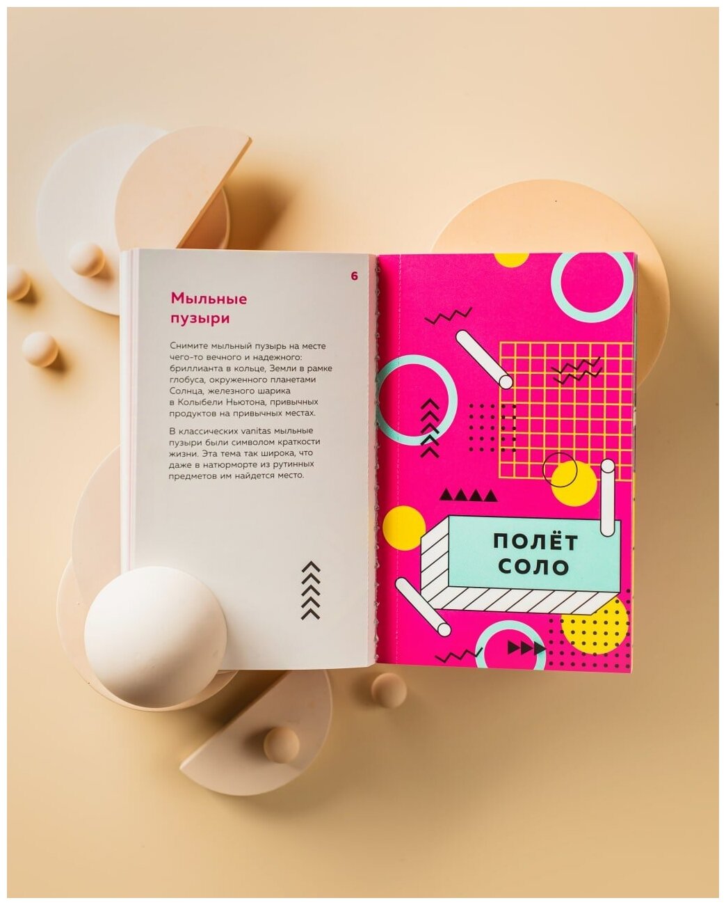 В книге «Карманный генератор идей» 52 карточки, которые легко отрываются по перфорации. На каждой из них — творческое задание от Дины с различными предметами, которые вы легко найдете дома или на улице. Самые простые темы сосредоточены вокруг одного реквизита, а самые сложные уровни предложат вам, например, показать исчезнувший предмет или передать ощущение чужого присутствия на фото.