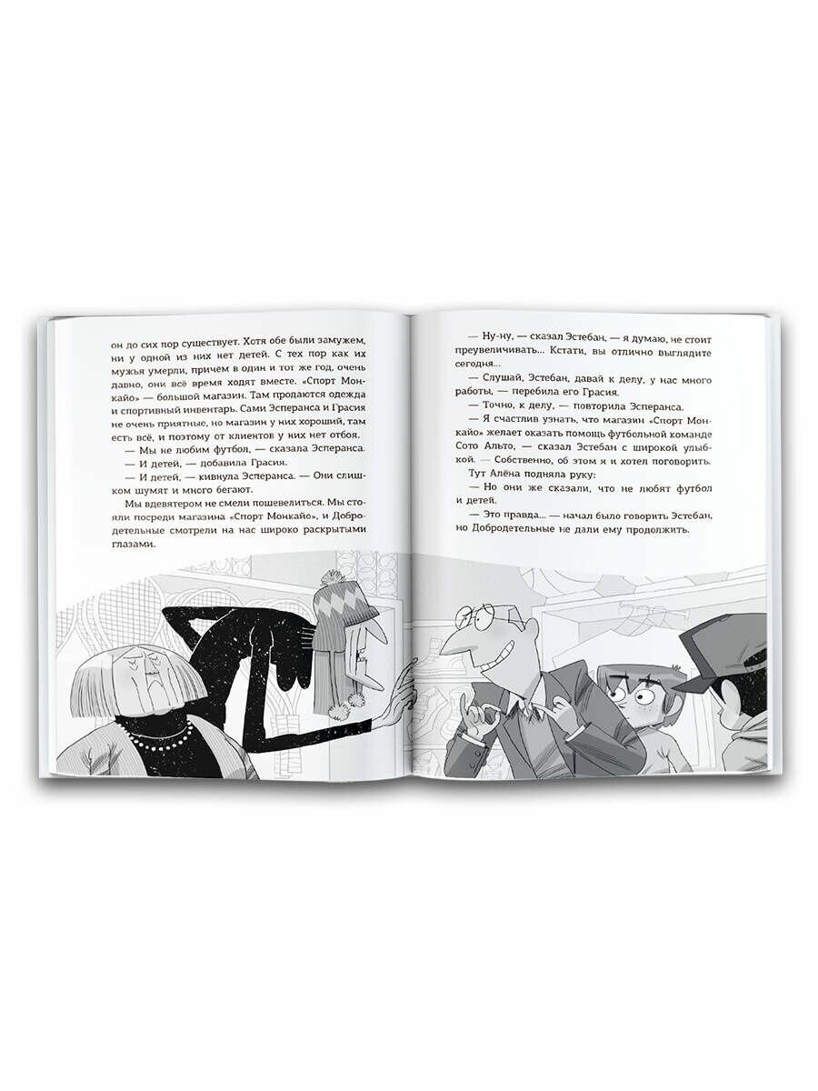 Это пятая книга из серии детективы футболисты. В этой книге появляется новый очень необычный тренер Морли у команды "Сото Альто", да и " Сото Альто" - уже не "Сото Альто"... А также появляется новый игрок - Грета, у которой глаза даже больше, чем у Алёны, по мнению Франциско..