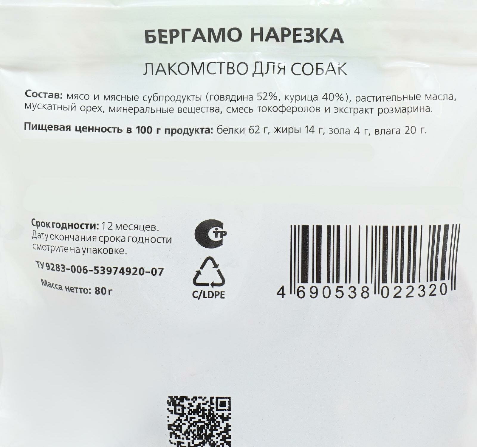 Лакомство для собак TiTBiT Колбасный двор Нарезка Бергамо 80г