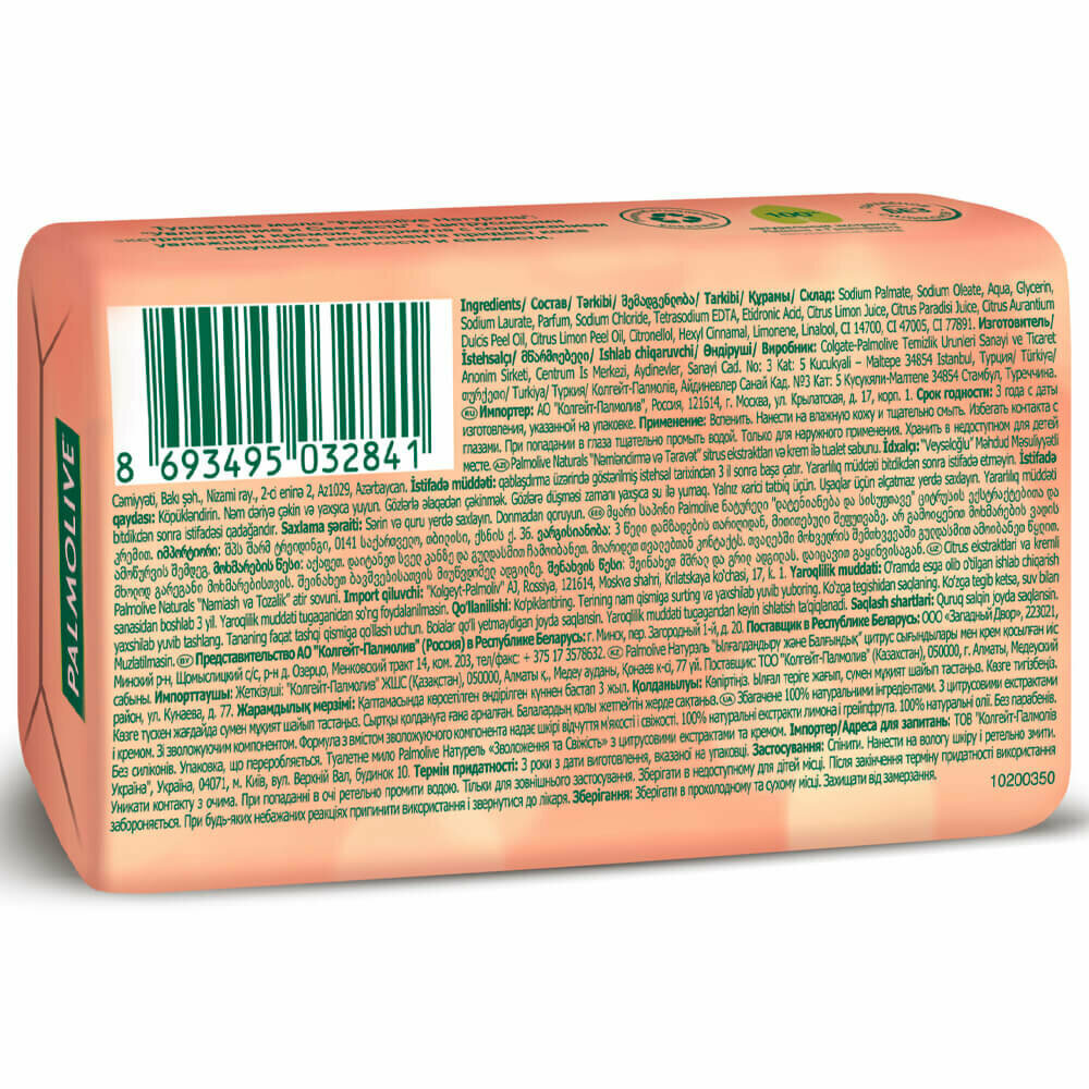 Мыло Palmolive Натурэль Увлажнение и свежесть с цитрусовыми экстрактами и кремом с увлажняющим компонентом 90г
