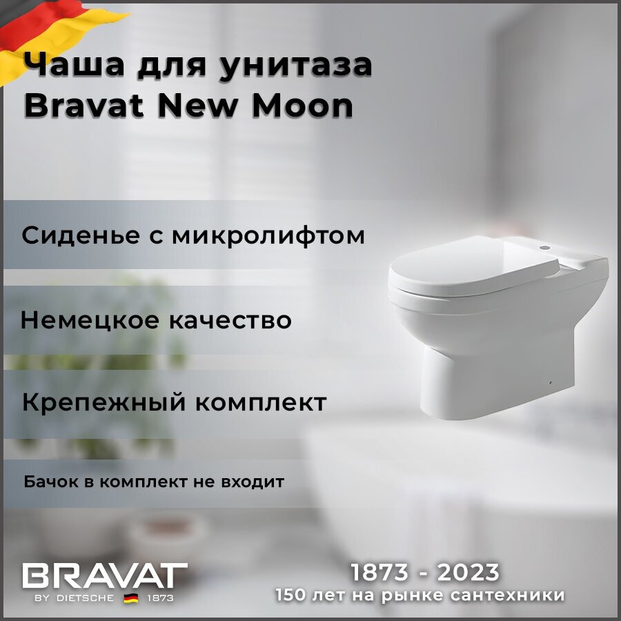 BRAVAT New Moon CX01019UW-P-RUS Унитаз-компакт (чаша) Подвод воды: Горизонтальный, Сиденье в комплекте: материал дюропласт; Функция плавного закрывания Soft-close; Цвет белый; Крепежный комплект в наборе; размер чаши 635x365x395мм; вес брутто:30,8кг