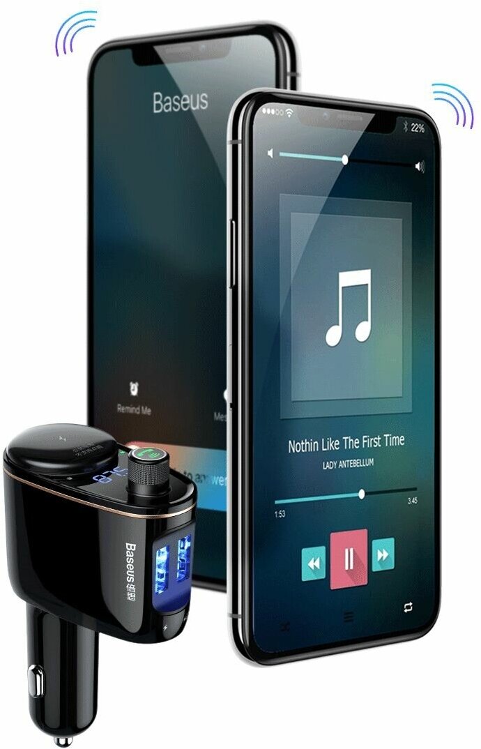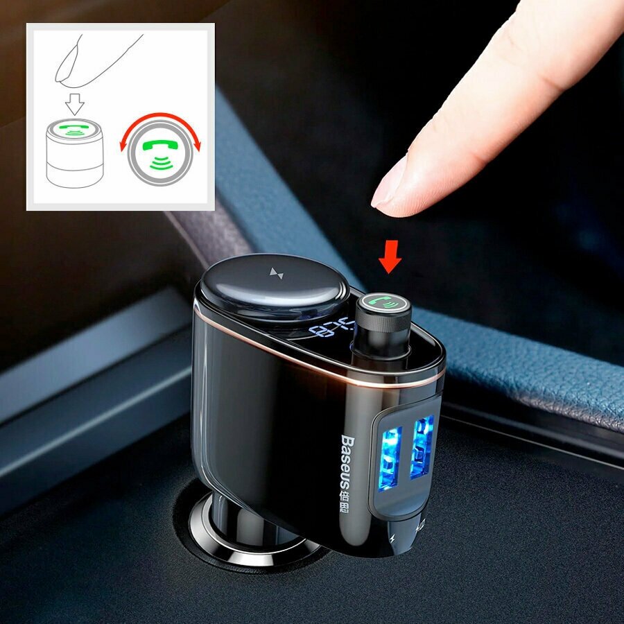 Универсальный FM-передатчик Baseus Locomotive, который позволяет вам слушать музыку и разговаривать по телефону по беспроводной сети, а также заряжать свой мобильный телефон. Разговаривайте по телефону, слушайте музыку без хлопот и заряжайте свой мобильный телефон! Просто подключите передатчик к прикуривателю, и на вашем автомобиле вдруг появится много новых функций. Оцените частоту стерео и FM-передатчика на одном канале. Нажмите кнопку вызова на FM-передатчике, чтобы разговаривать с телефоном через динамики автомобиля — безопасно и комфортно. Когда закончите, откройте Spotify или любой другой музыкальный сервис и послушайте свою любимую музыку. Заряжайте два мобильных телефона одновременно. С дополнительным прикуривателем вы также можете заряжать другие устройства, такие как GPS и т. д.