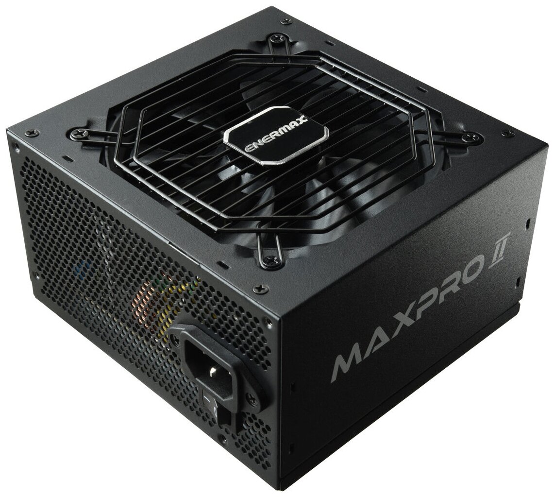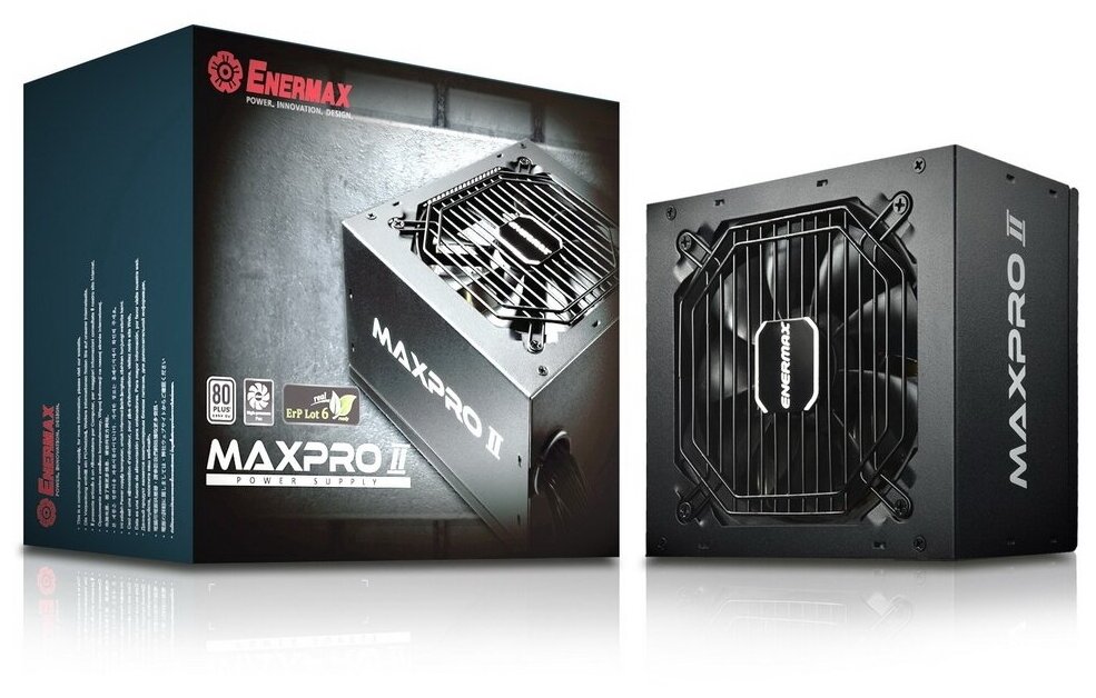 Enermax представляет линейку блоков питания MAXPRO II. БП соответствуют базовому уровню эффективности 80 Plus. При этом реальная эффективность несколько выше требований сертификата и составляет 87% в сетях 230 В при нагрузке 50%. MAXPRO II могут предложить ряд «фишек», обычно доступных в более продвинутых моделях. Например, высококачественные японские конденсаторы или технологию Smart Airflow Control (SAC), обеспечивающую практически бесшумную работу устройства при нагрузке на систему ниже 40%. Для охлаждения Enermax MAXPRO II используется фирменный 120-мм вентилятор с высоким статическим давлением. Электрическая схема БП включает комплексные защиты от перегрузки (OPP), повышенного (OVP) и пониженного напряжения (UVP), от короткого замыкания (SCP) и защиту от кратковременных бросков (SIP).