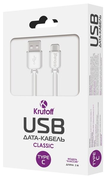 Кабель Krutoff USB Type-C Classic 2m White 14947