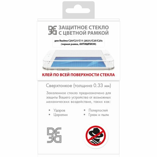 Стекло закаленное DF для Realme C20 / C21 / C11 2021 / C25 / C25s Anti-Spy Fullscreen Fullglue Black Frame rmAntiSpy-01 Антишпион для Realme C20/C21/C11(2021)/C25/C25s
