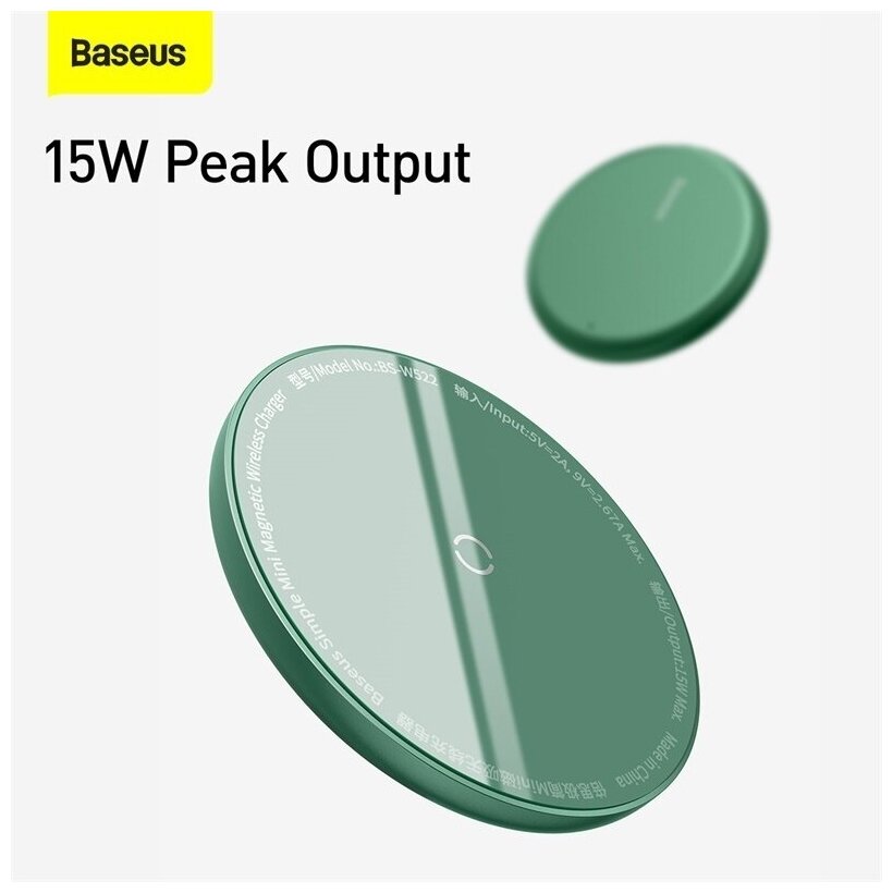 Беспроводное зарядное устройство Baseus Simple Mini Magnetic Wireless Charger Green WXJK-H06