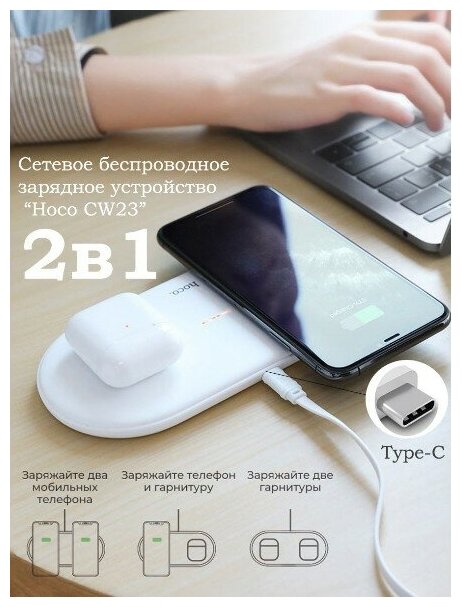 - Беспроводное зарядное устройство Hoco CW23 2 в 1 Dual Power