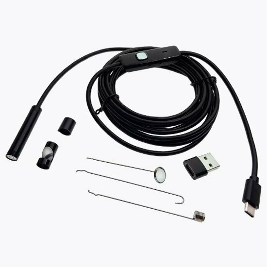 Эндоскопы – это устройства, позволяющие увидеть скрытые детали различных механизмов. Они широко применяются при обследовании труб, деталей автомобилей, строительных конструкций и т.д. Современные USB эндоскопы, которые подключаются к компьютеру, позволяют получать и изображение с камеры в режиме реального времени и записывать видео, а также делать фотоснимки. Данный эндоскоп Можно использовать как с компьютером, ноутбуком так и с телефоном или планшетом на системе Android (в комплекте переходник). USB Эндоскоп водонепроницаемый, длина кабеля 3.5 метра с регулируемой подсветкой на 6 супер ярких светодиодах. Предназначен для видео инспекции труднодоступных мест различных технических объектов, скрытых полостей и оборудования, часто используется в авторемонте (осмотр внутренностей двигателя: систему смазки, состояние поверхности цилиндров, надклапанное пространство и тд.) путем введения в полость исследуемого объекта миниатюрной видеокамеры с диодной подсветкой, закрепленной на гибком проводе. Особенности Эндоскоп может делать фото и записывать видео. Фотографии и видео файлы будут храниться в вашем мобильном телефоне или компьютере, что удобно для последующего анализа.
