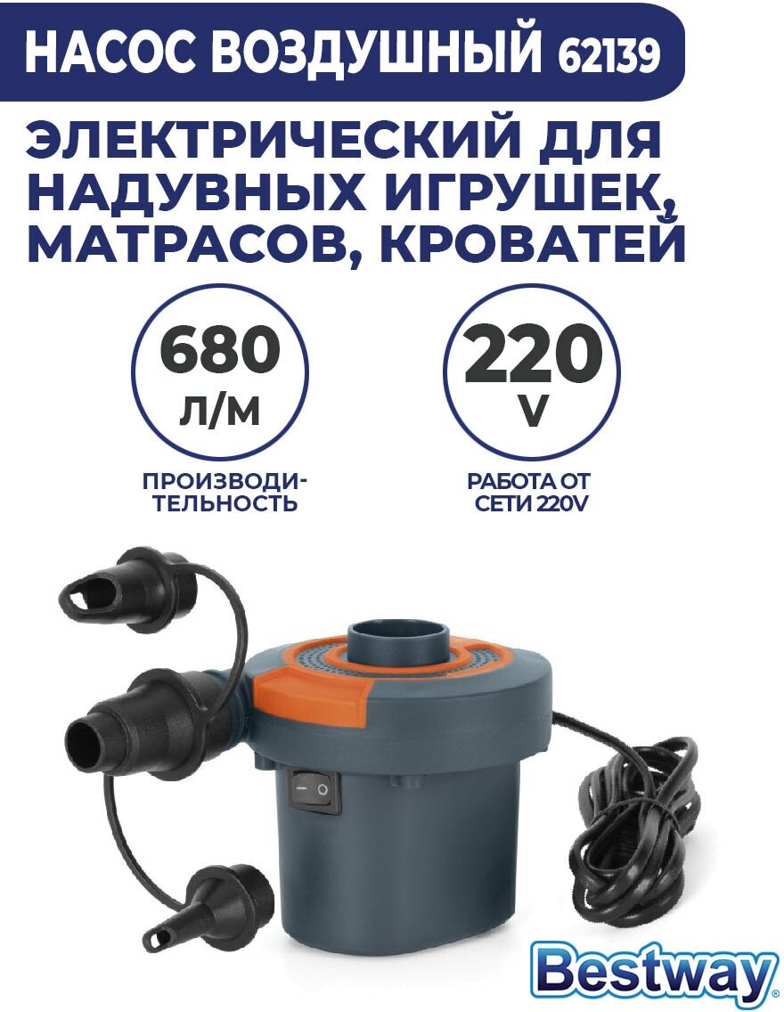 С помощью данного насоса можно легко накачать любые надувные изделия, игрушки, мячи, кровати, матрасы, лодки и т.п. Насос работает от электрической розетки 220В, безопасен в использовании, влагозащищен, можно пользоваться как внутри, так и вне помещений. Насос подходит ко всем надувным изделиям Betway.