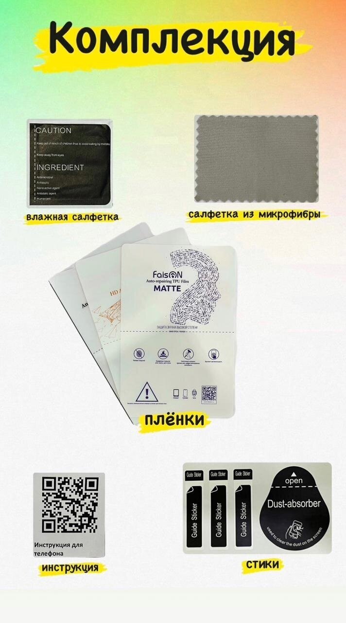 Гидрогелевая пленка создана из полимерного материала, поглощающего и удерживающего влагу. Она обладает высокой прочностью, способна защитить смартфона от появления царапин и потертостей. Легко устанавливается, не требует особого ухода. Имеет все необходимые отверстия и вырезы. Идеально соответствует параметрам заявленной модели.