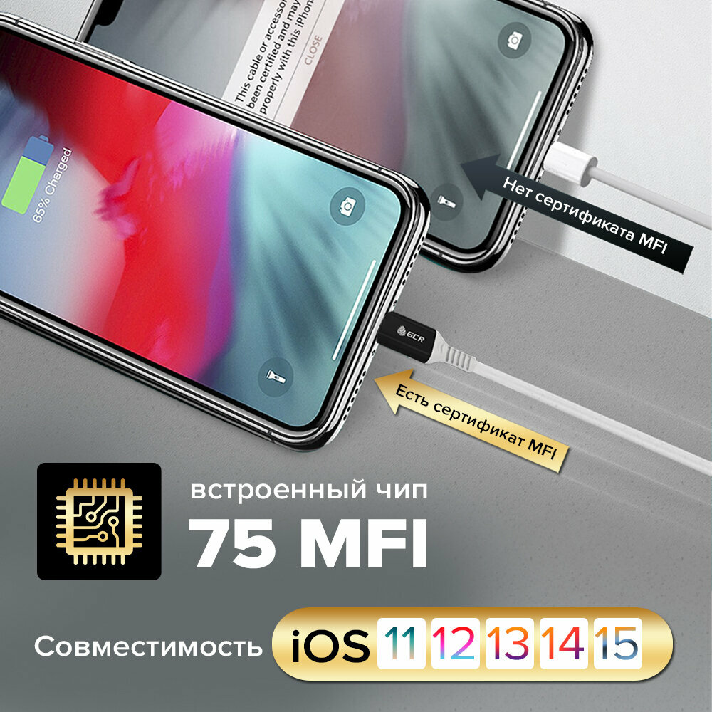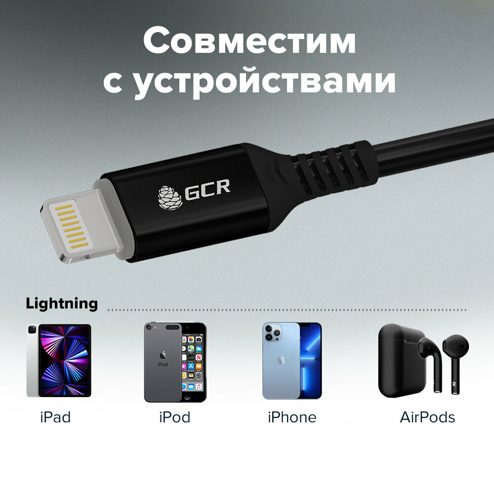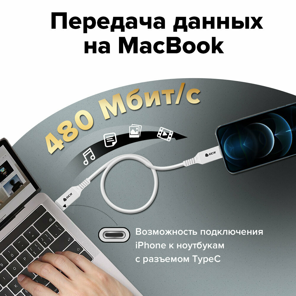 Стильный кабель GCR TypeC Lightning для iPhone с поддержкой стандарта Power Delivery предназначен для зарядки iPhone и других устройств от компании Apple. Поддерживает стандарт USB 2.0 и обеспечивает бесперебойную передачу данных на Macbook и другие ноутбуки с разъемом TypeC со скоростью до 480 Мбит/с. Благодаря встроенному чипу 75 MFI, поддерживающему последние версии обновлений iOS, кабель подходит как для iPhone 12, так и для более ранних версий iPhone. При изготовлении используются только современные и качественные материалы: кабель не уступает оригинальным аксессуарам для iPhone. Экранирование защищает цифровой сигнал от помех и искажений, а армирование гарантирует долгий срок службы и прочность, благодаря чему кабель можно использовать в любых условиях. Медный проводник надежно защищен с помощью ультрасовременной и экологичной нейлоновой оплетки. Инновационные коннекторы позволяют мгновенно заряжать смартфон с мощностью до 18W.