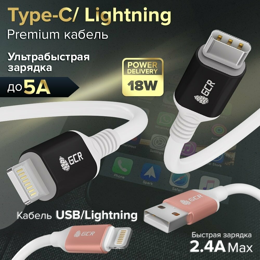 Кабель GCR Type-C - Lightning MFI Power Delivery 18W 50cm GCR-53187