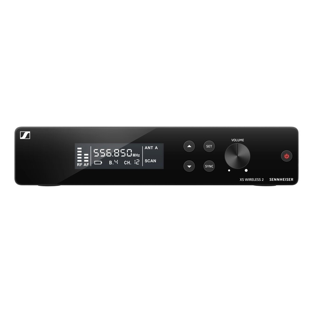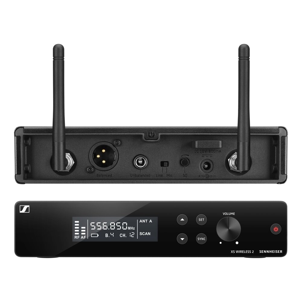 Беспроводной приёмник EM-XSW 2 в комплекте Sennheiser XSW 2-Cl1-B предлагает две внешние разнесенные антенны и металлический корпус. Выходы – на балансном разъеме XLR и небалансном 1/4" TS Jack. Поддерживается 12 каналов, 8 банков в каждом. Графический ЖК-дисплей на фронтальной панели ресивера показывает номер активного канала, частоту, уровень сигнала и заряд батареи. На корпусе можно найти дополнительные кнопки настройки и синхронизации, есть и большая ручка регулировки громкости. Присутствует функция автоматического управления частотами. Источник питания NT 12-5 CW работает с напряжением от 100 до 240В.