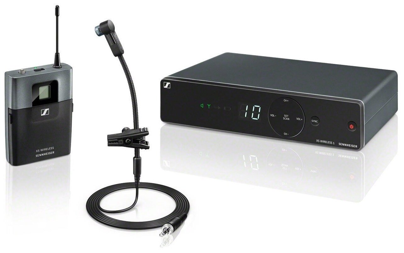 Sennheiser – законченная беспроводная радиосистема для медных духовых инструментов, входит в серию XS Wireless 1. В комплект входят приёмник EM-XSW 1, поясной передатчик SK-XSW, микрофон на «гусиной шее» e908T, блок питания NT 12-5 CW и две батареи АА. Диапазон рабочих частот – 614-638 МГц.