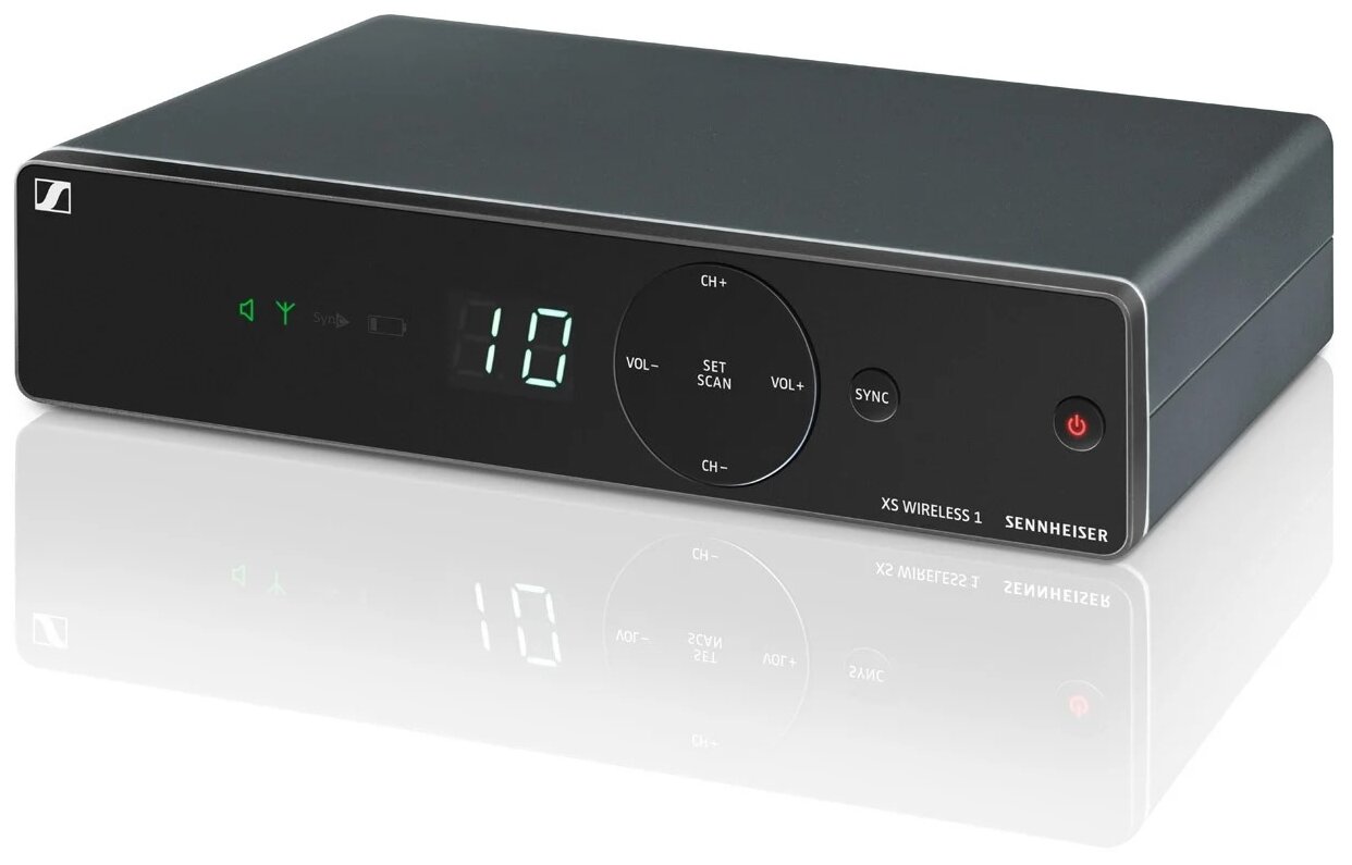Беспроводной приёмник EM-XSW 1 из комплекта Sennheiser выполнен с разнесенными внутренними антеннами, а также выходами на XLR и 1/4" TS Jack. 10 каналов и 8 банков в каждом. Дисплей на фронтальной панели отображает номер активного канала. У приёмника – автоматическое управление частотами, а для легкой установки возможна синхронизация через удаленный канал. Выполнен в корпусе из ABS-пластика. Входящий в комплект универсальный источник питания NT 12-5 CW работает с напряжением 100-240 Вольт.
