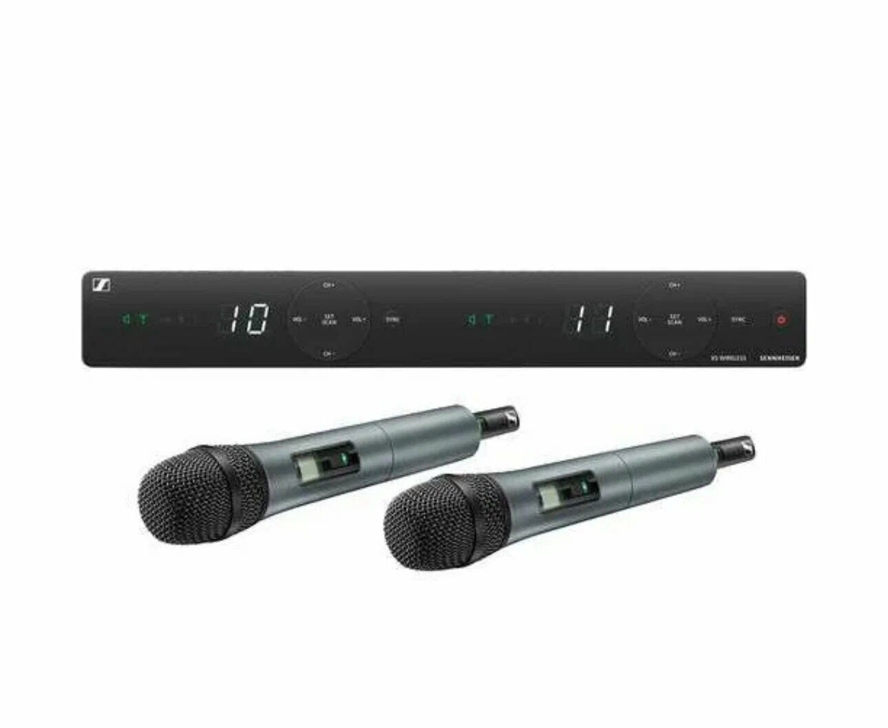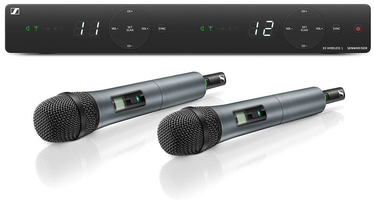Цифровая вокальная радиосистема, в составе которой есть двухканальный приемник EM-XSW 1 DUAL и два ручных передатчика SKM 835-XSW с микрофонными динамическими элементами. РЧ-диапазон 614 – 638 МГц (B), до 10 совместимых каналов, частотный диапазон 55 Гц – 18 кГц. Мощность передатчика 10 мВт, питание от 2 батареек типа АА, время работы до 10 часов.