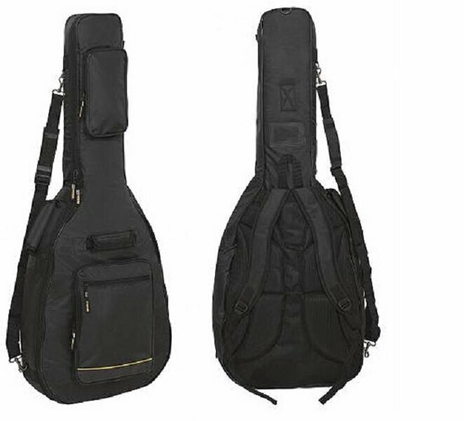Утепленный чехол для акустической гитары dreadnought, подкладка 25 мм, чёрный. Внутренние размеры: общая длина 110 см, длина под гриф - 55 см; деку - 55 см; ширина самой широкой части - 41 см ; глубина - 13 см.