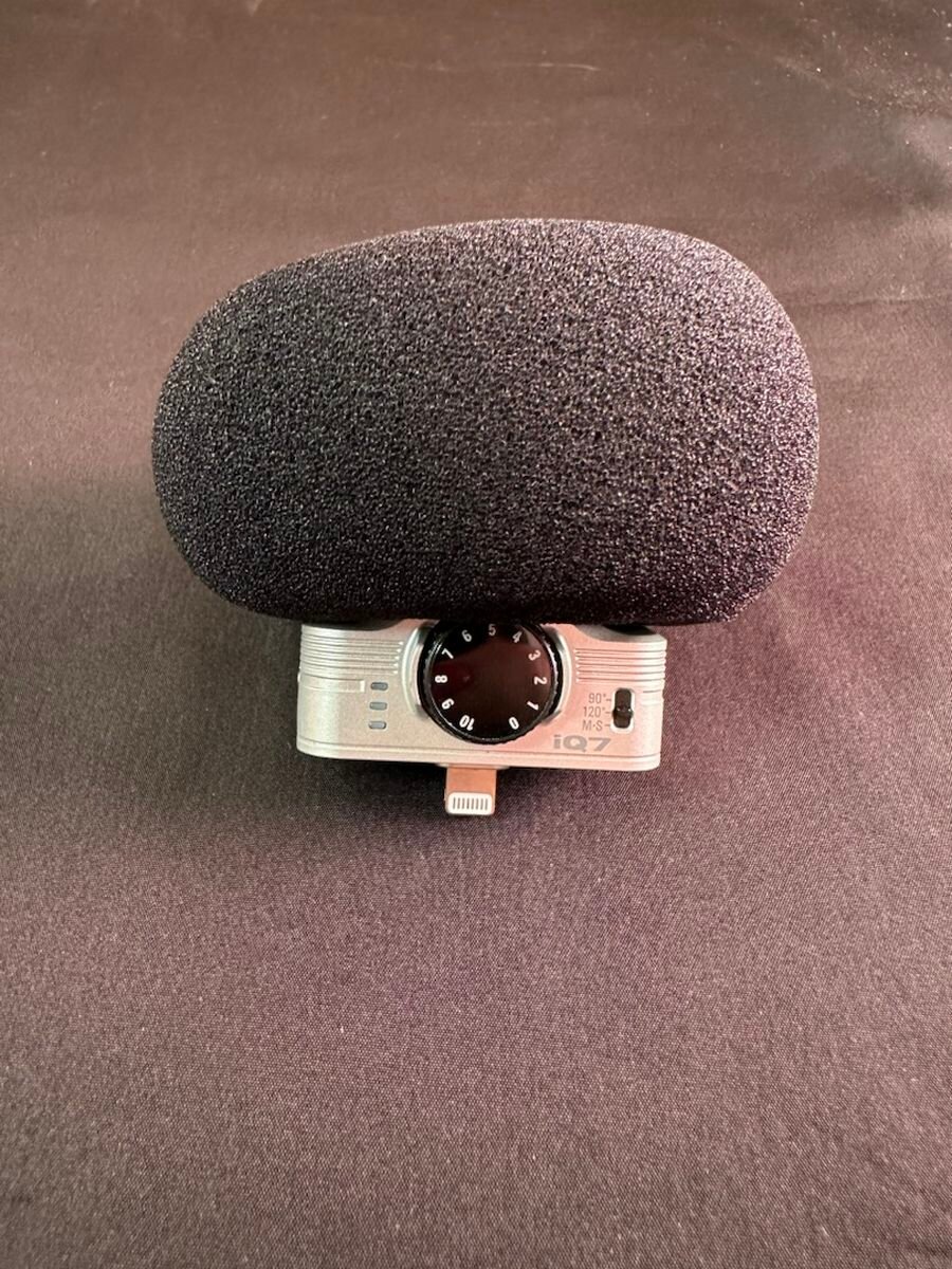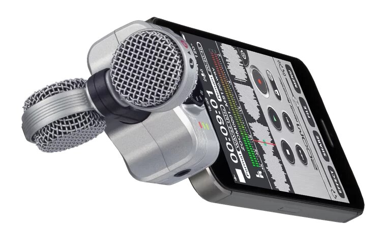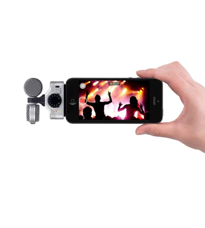 Конденсаторный стереомикрофон в конфигурации M-S для iOS-устройств (см. список в тексте). Максимальное звуковое давление входного сигнала – до 120 дБ, качество записи – 16 бит и 48/44.1 кГц), настраиваемый угол записи в диапазоне от 90 до 120 градусов. Аппаратное управление уровнем записи, работа с любым приложением для записи, бесплатное фирменное приложение ZOOM Handy Recorder, которое позволяет в том числе осуществлять мониторинг без задержки. Поролоновая ветрозащита в комплекте.