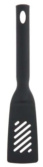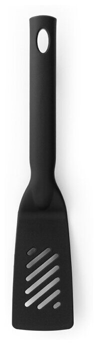 Лопатка "Brabantia" изготовлена из термостойкого пластика черного цвета. Такой лопаткой удобно перемешивать, переворачивать блюда при жарке (например, стейки, отбивные или рыбу), а также раскладывать блюда на тарелки. Рабочая поверхность лопатки оснащена прорезями для стекания излишков масла и жира. На ручке имеется небольшое отверстие, за которое лопатку можно подвесить в любом удобном для вас месте.