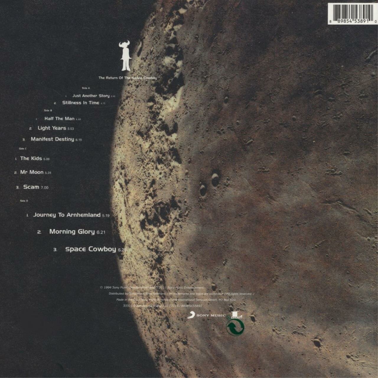 Список композиций:A1 Just Another Story A2 Stillness In Time B1 Half The Man B2 Light Years B3 Manifest Destiny C1 The Kids C2 Mr Moon C3 Scam D1 Journey To Arnhemland D2 Morning Glory D3 Space Cowboy Компании и т. п. Pressed By – Record Industry – 95074 Над релизом работали Bass – Stuart* Design – Creative Hands Didgeridoo – Wallis* Drums – Derrick* Engineer – Adrian Bushby (tracks: D3) Horns [Uncredited] – Gary Barnacle (tracks: C1), John Thirkell (tracks: C1), Richard Edwards (2) (tracks: C1) Keyboards – Toby* Lacquer Cut By – Timtom* Photography By – Chris Nash (2), Eddie Monsoon Producer, Arranged By – J. K.* Recorded By – Mike Nielsen Recorded By [Additional], Mixed By – Al Stone Vocals [Space Cowboy] – Jay