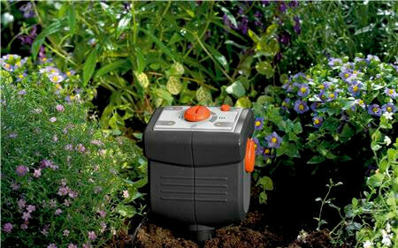 Удобная модель для автоматического полива 2 участков сада. Большой дисплей для удобства программирования. Панель управления можно отсоединить для облегчения программирования. Для каждого выхода можно запрограммировать до 3 циклов полива в сутки. Продолжительность полива можно задавать в промежутке от 1 минуты до 3 часов 59 минут. Можно свободно выбирать дни полива. К каждому выходу можно подсоединить датчик дождя или датчик влажности почвы GARDENA. Обоими выходами можно управлять с помощью датчика. Можно обеспечить автоматическую работу ночью с использованием датчика влажности почвы. Приблизительно 1 год работы от 1 щелочной батареи напряжением 9 В (в комплект не входит). с индикатором заряда батареи.