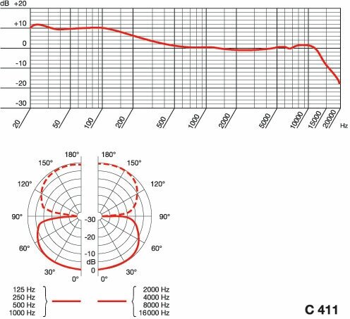 AKG C411 PP исполнен в пластиковом корпусе с черной матовой отделкой. Ему нужно фантомное питание 9-52В, при этом ток составляет 2 мА.