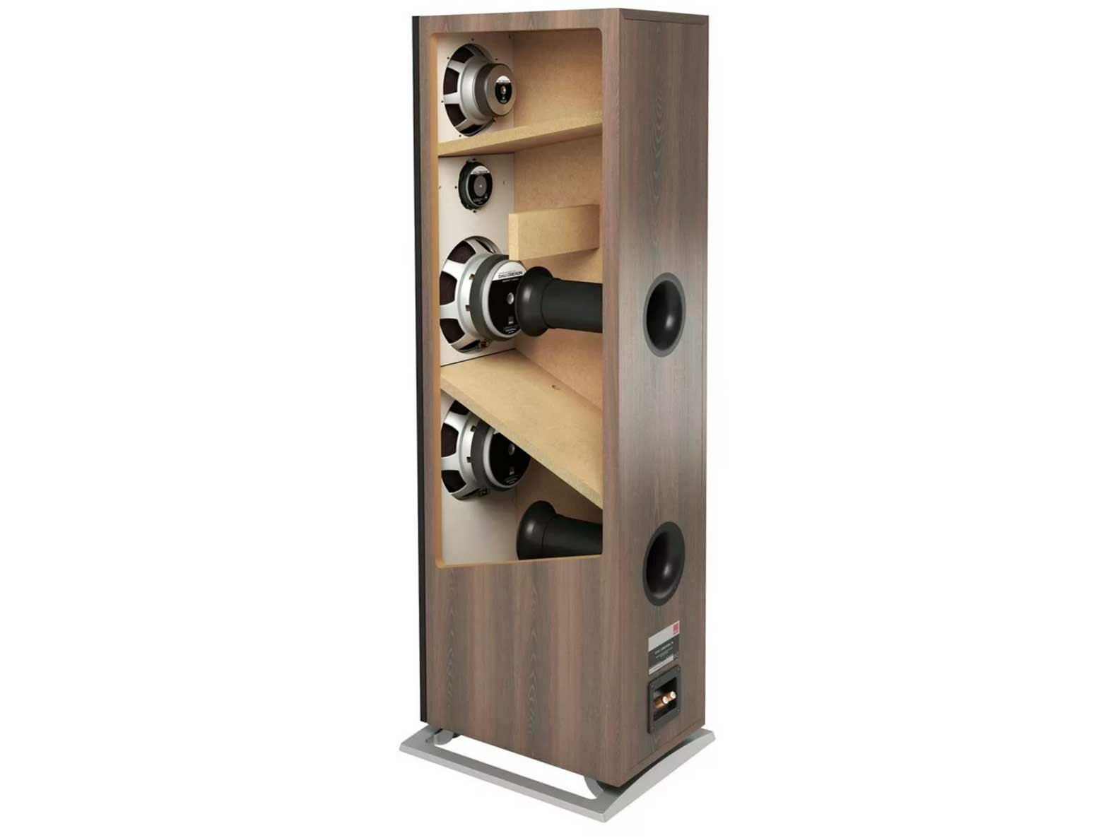 Колонки имеют трехполосную конфигурацию и оснащены парой 9-дюймовых басовиков, а также 7-дюймовым СЧ-динамиком. Все они оборудованы обновленными диффузорами из бумажно-древесной массы, благодаря которым звучат сбалансировано, напористо и точно – в духе лучших колонок DALI. Диффузоры снабжены надежными резиновыми подвесами, обладающими значительной долговечностью. Использование двух низкочастотных динамиков в DALI Oberon 9 позволило сделать басы по-настоящему глубокими, и сохранить сравнительно узкой фронтальную панель колонки для ее лучшей интеграции в жилой интерьер. В то же время, 9-дюймовые диффузоры могут перемещаться с меньшей амплитудой (а значит потенциально и с меньшими искажениями) для обеспечения такого же звукового давления, чем диафрагмы меньших по размеру динамиков. Отдельный среднечастотный динамик обеспечивает натуральное и артикулированное воспроизведение вокала и акустических инструментов, что делает звучание DALI Oberon 9 живым и увлекательным.