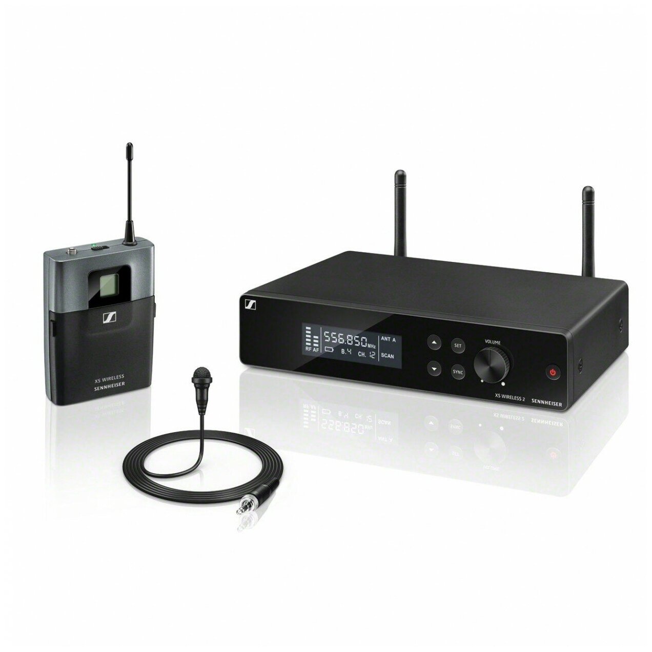 Sennheiser – беспроводная радиосистема, входящая в серию XS Wireless 2. В комплект входят приёмник EM-XSW 2, поясной передатчик SK-XSW, петличный микрофон ME 2-2, блок питания NT 12-5 CW и две батареи АА. Кроме того, в коробке вы найдете комплект креплений для монтажа в рэк и мягкий чехол. Диапазон рабочих частот системы – 548-572 МГц.